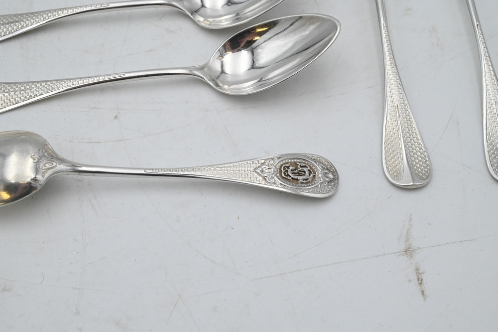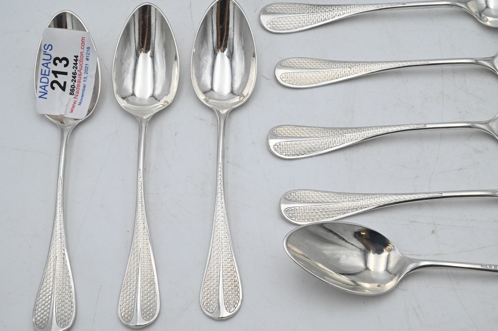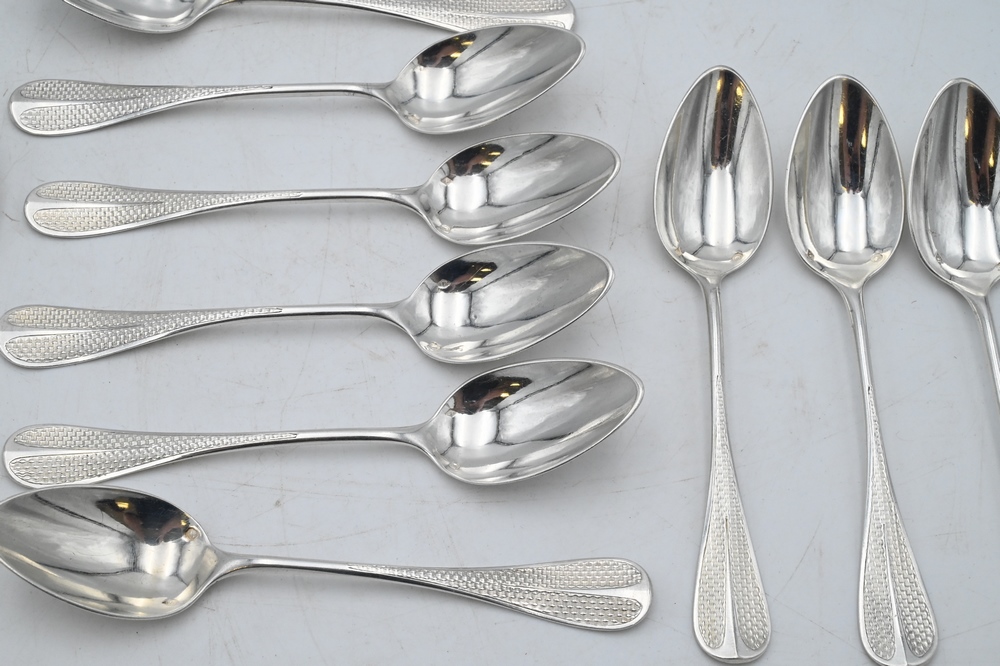 Lot 213: Set of 12 Emile Puiforcat Sterling Silver Teaspoons, length 5 1/2 inches, 8.7 t.oz.