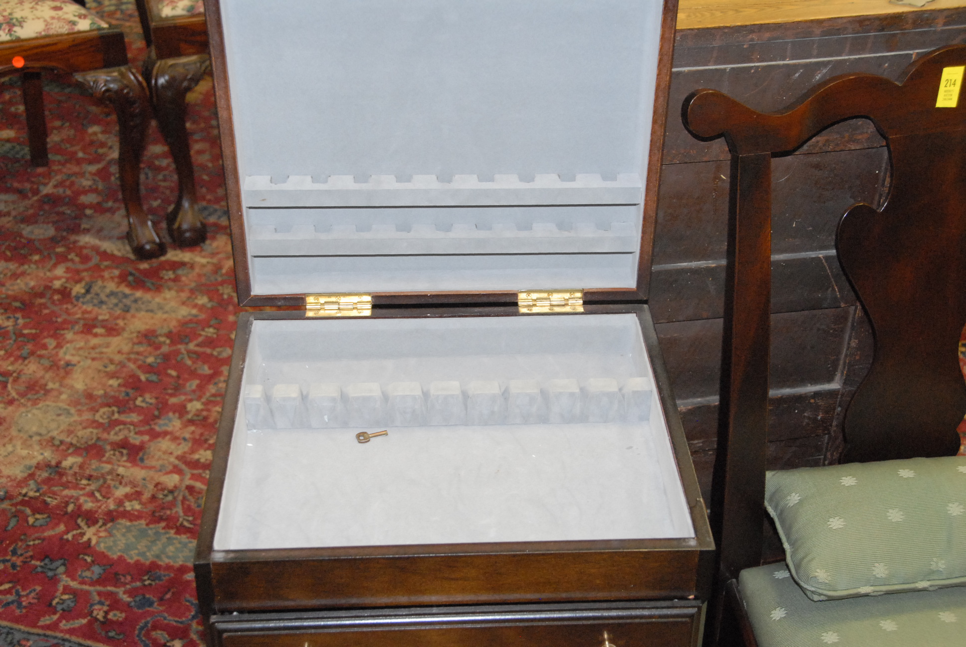 Silverware chest with lift top. Provenance: Estate of Judy Gengras McDonough of West Hartford, CT.