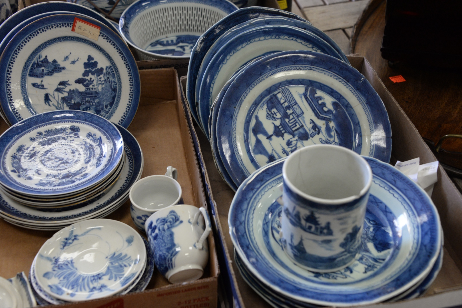 Six Tray Lots of Canton and Fitzhugh Blue and White Export, (some lot damage). Provenance: From a Newport, Rhode Island historic home, in the same family since 1761.