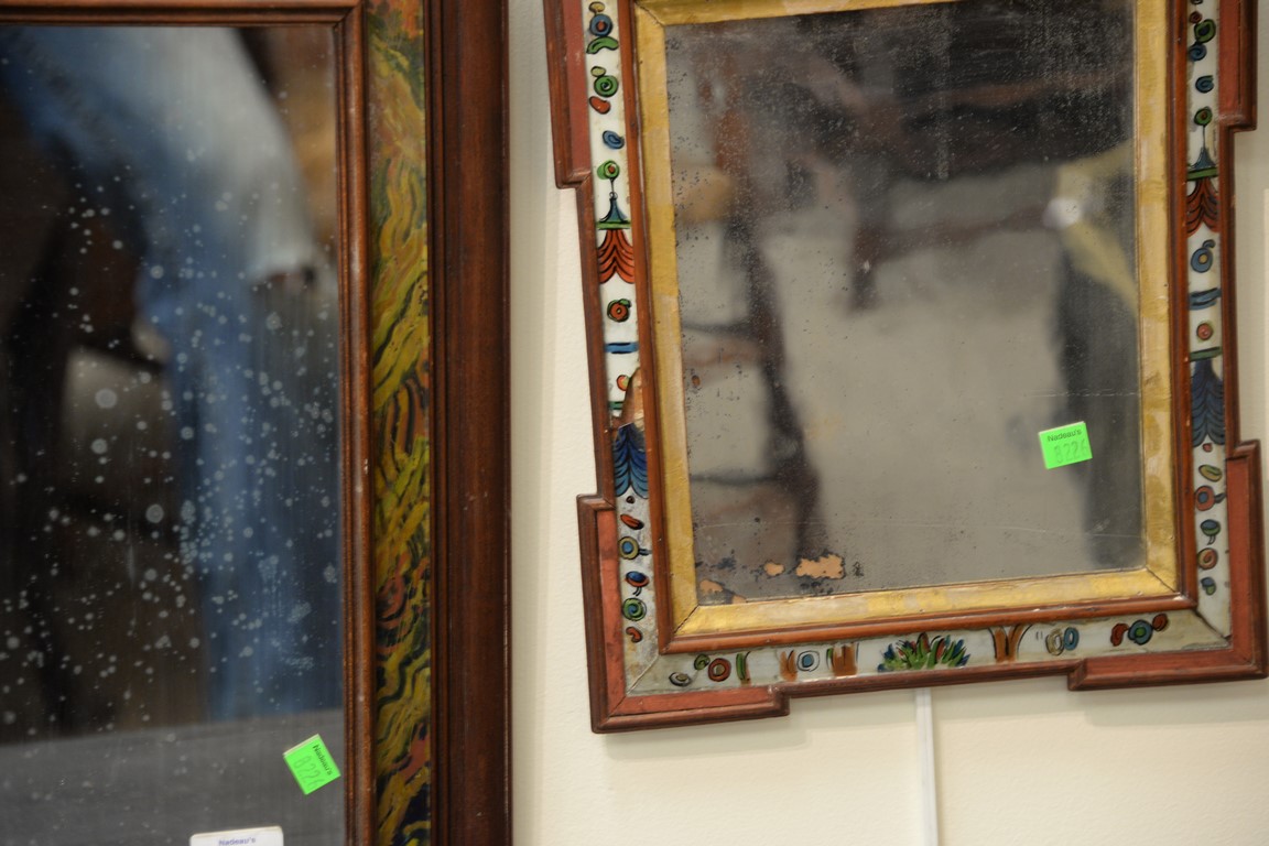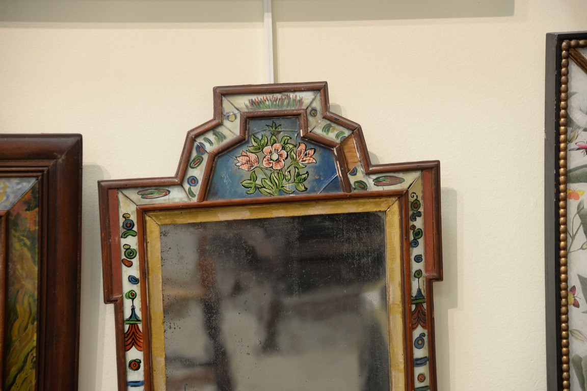 Three courting mirrors to include a pair and one larger one. pair with some imperfections tallest: height 25 inches Provenance: Estate of R. Donald Bassette