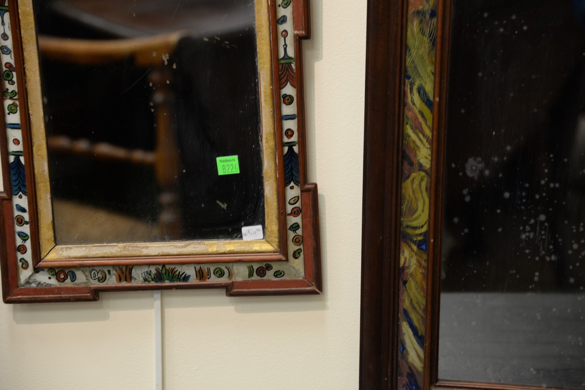 Lot 213: Three courting mirrors to include a pair and one larger one. pair with some imperfections tallest: height 25 inches P…