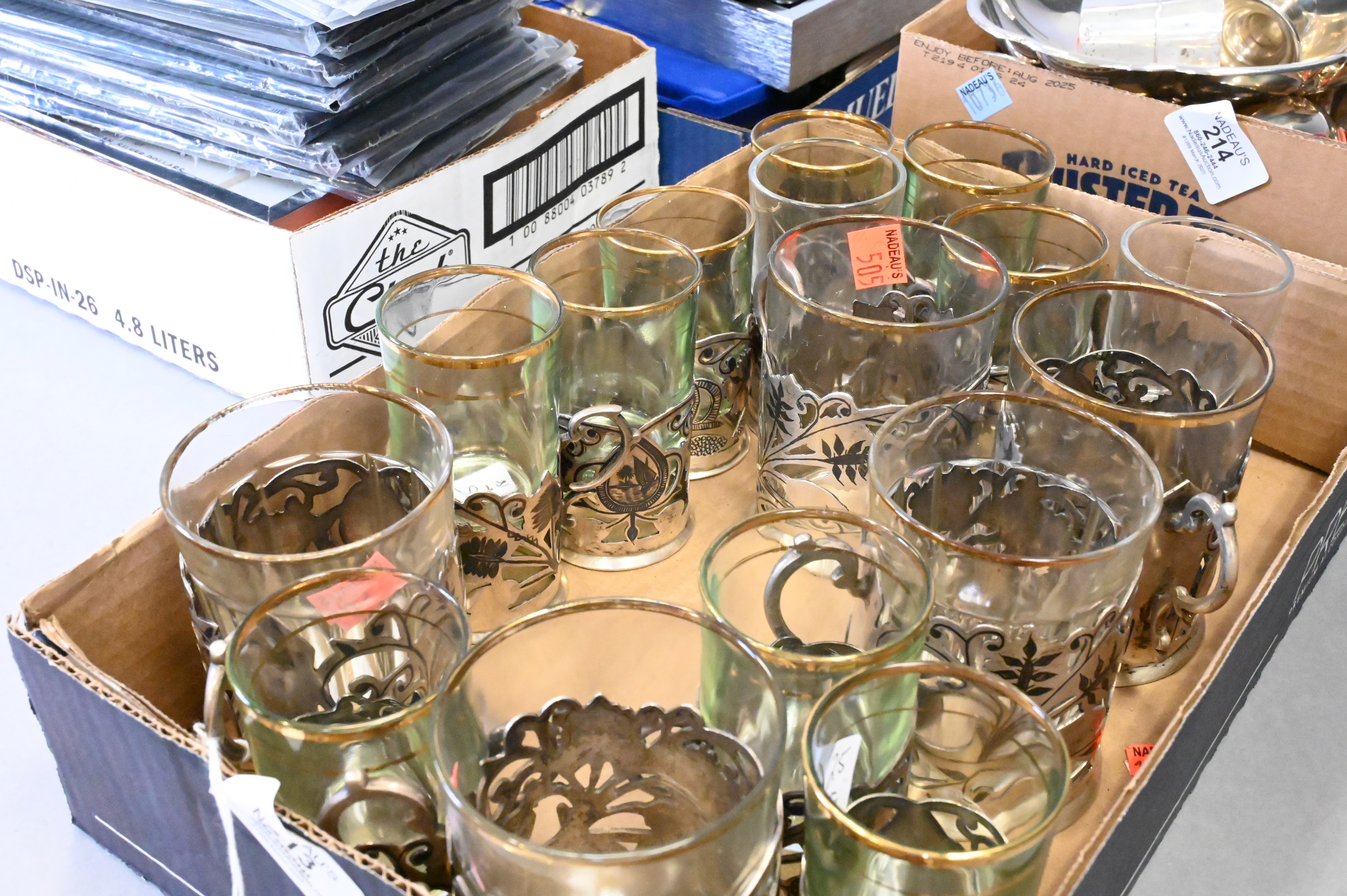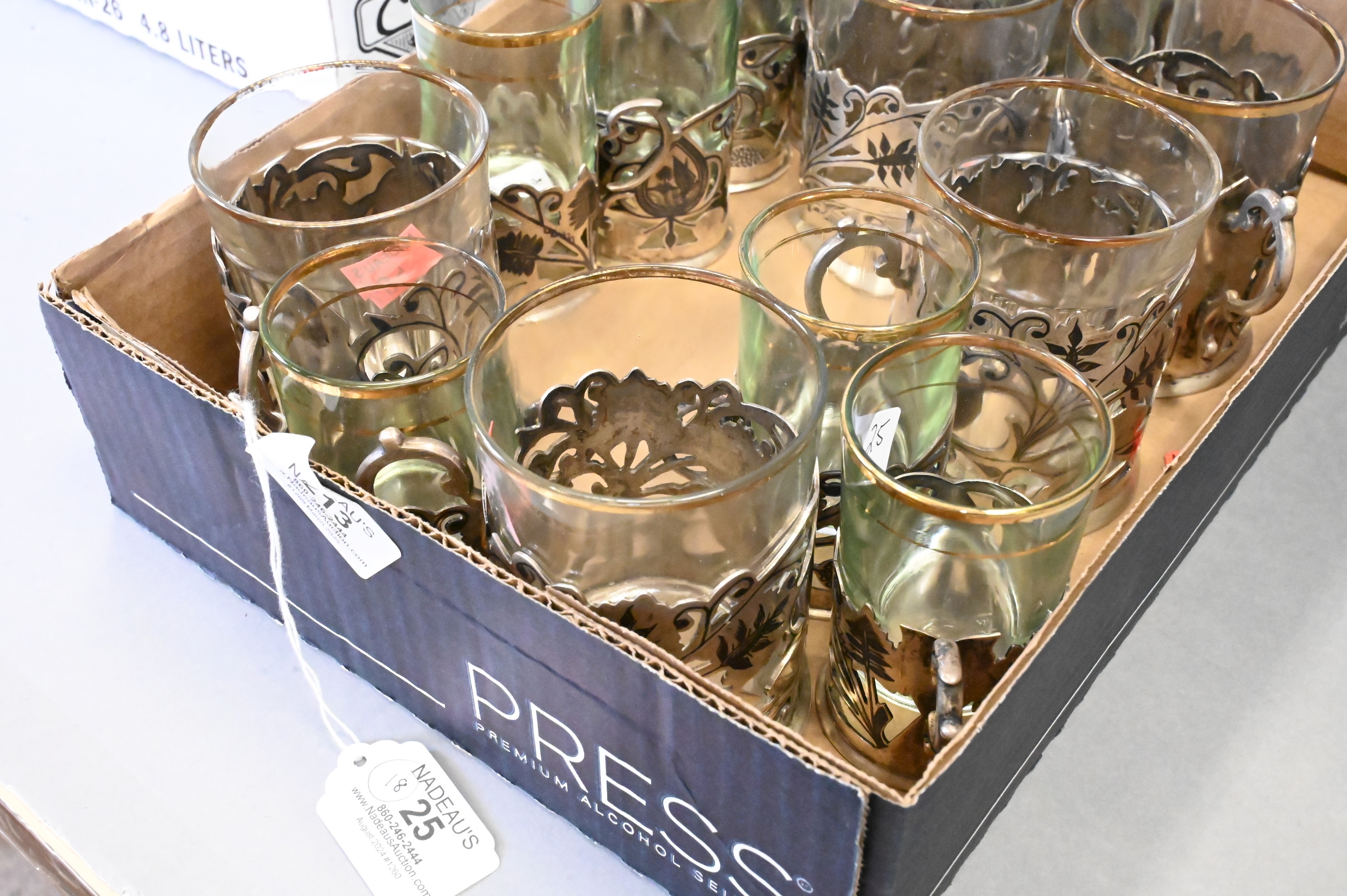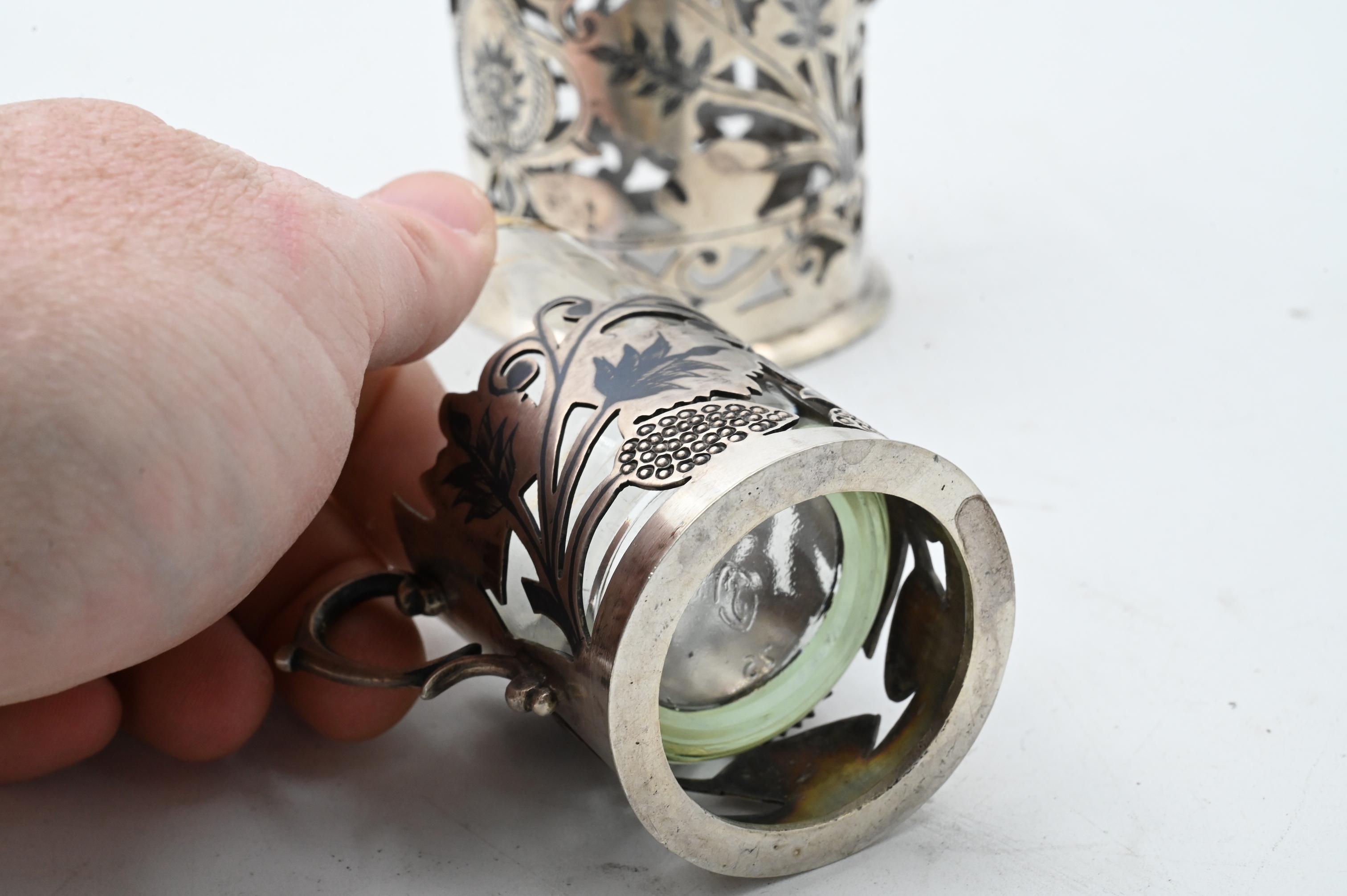 Lot 213: Two Sets of Silver Tea Cup Holders