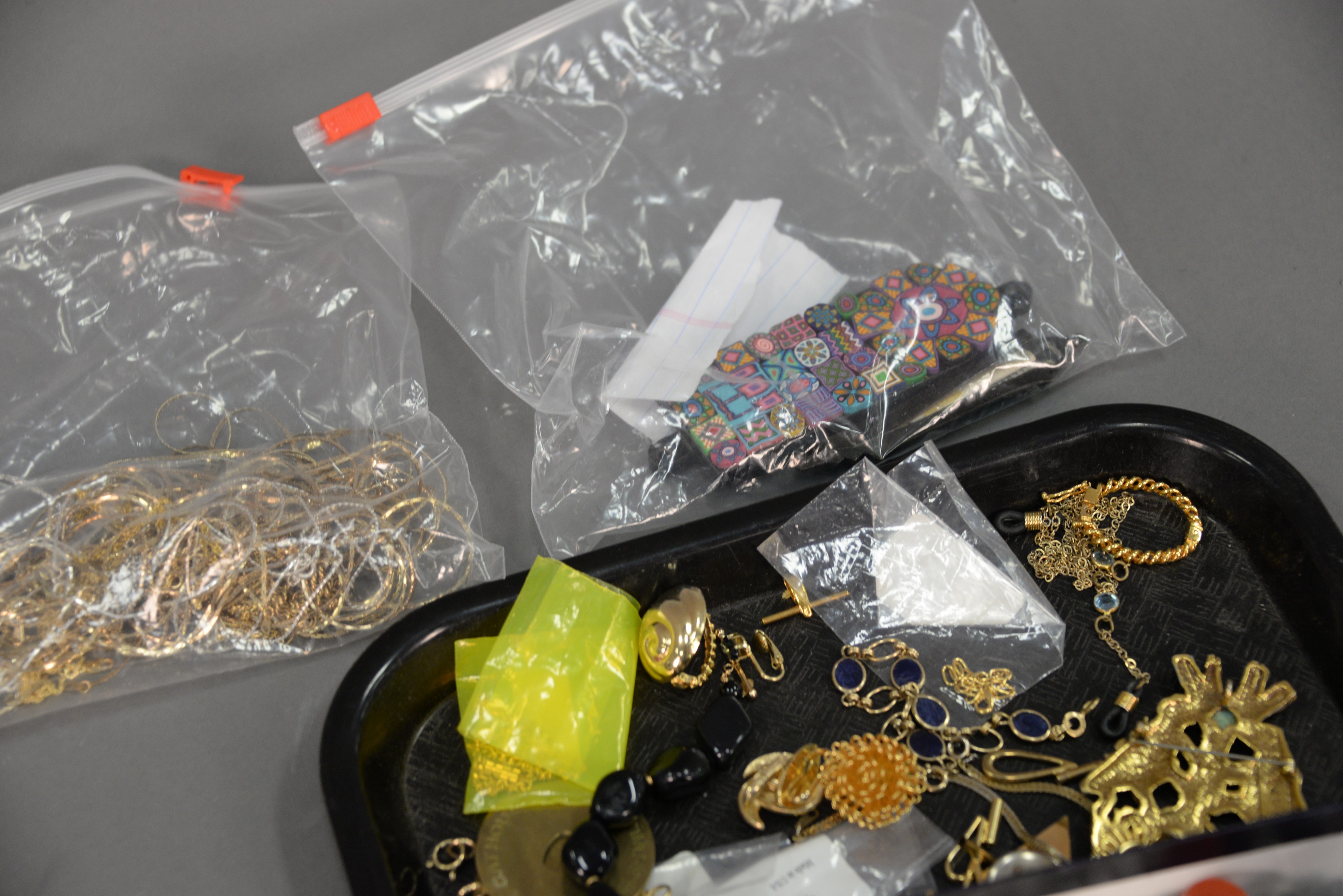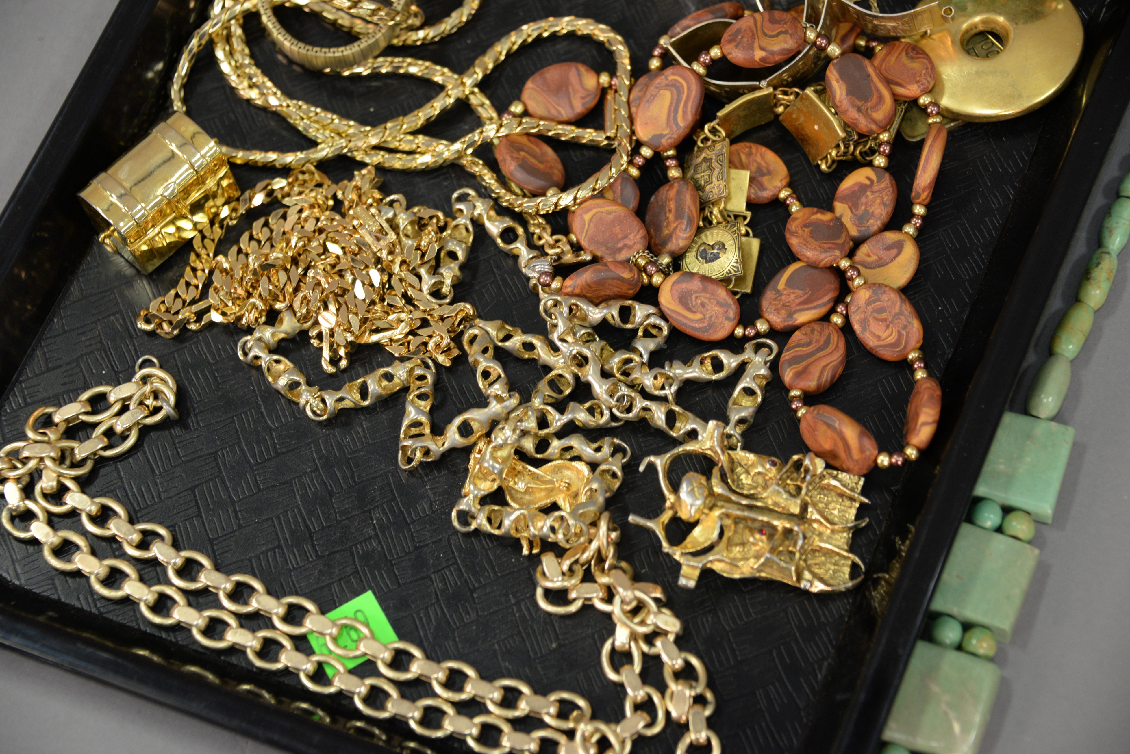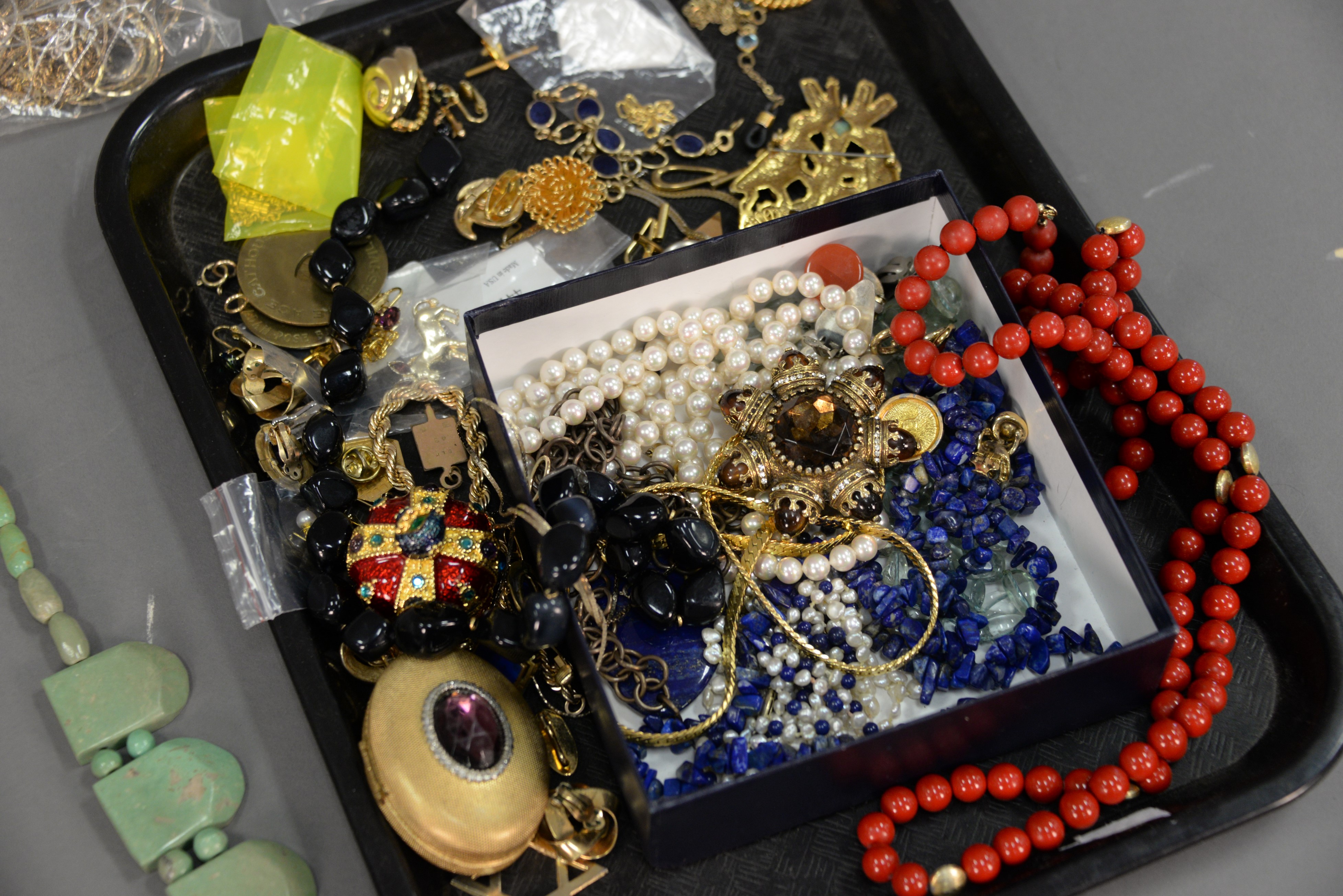 Two trays of costume jewelry.