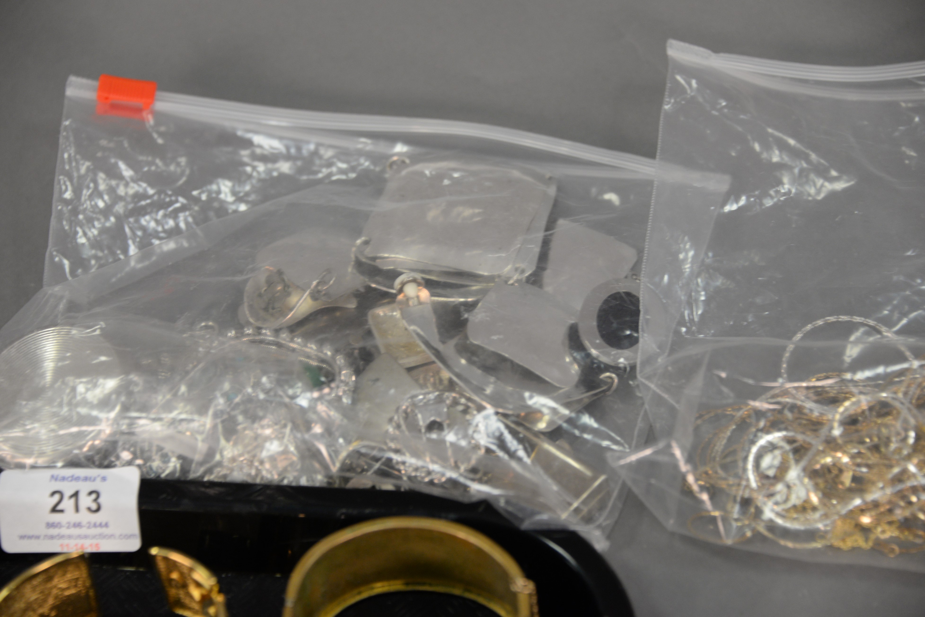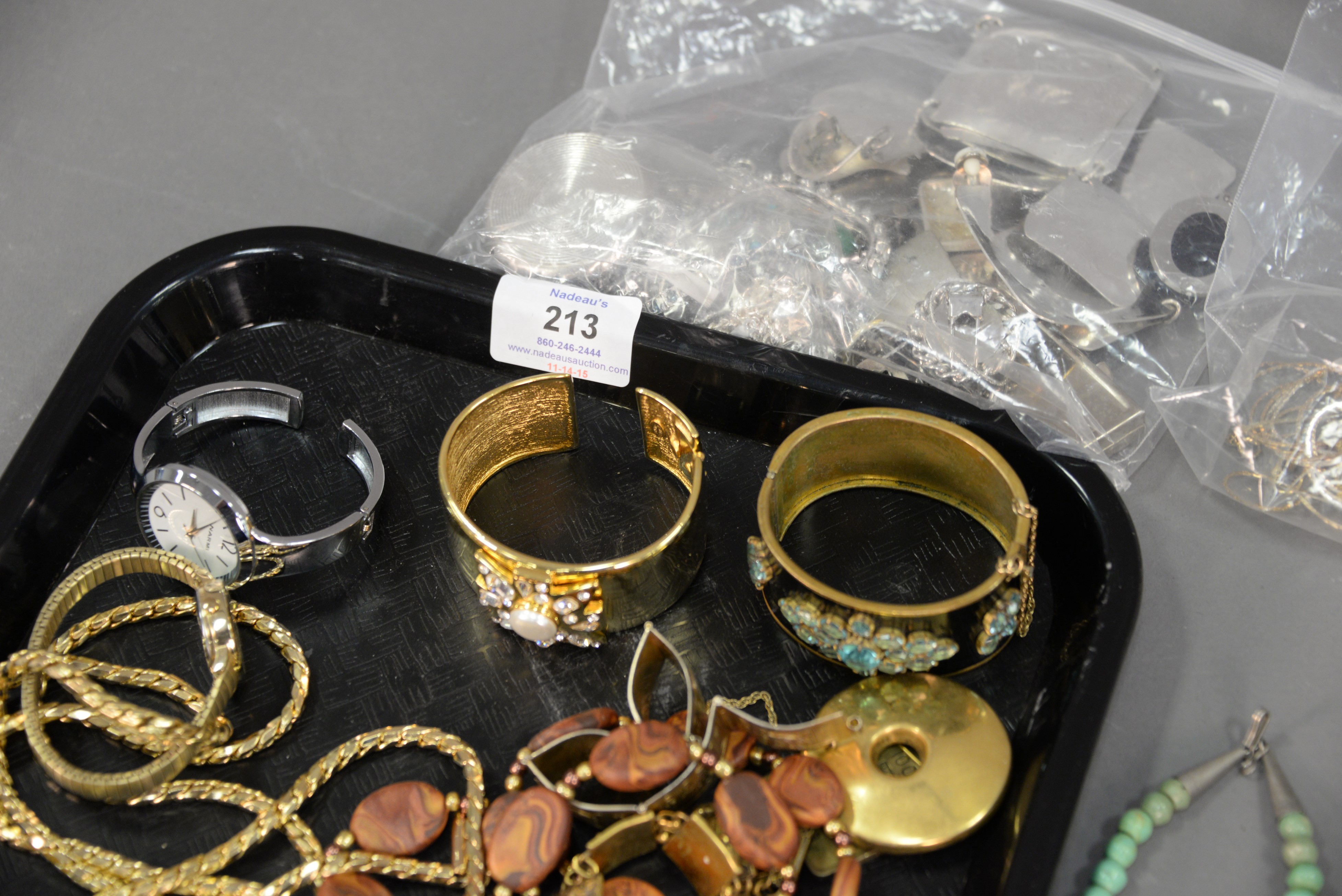 Lot 213: Two trays of costume jewelry.