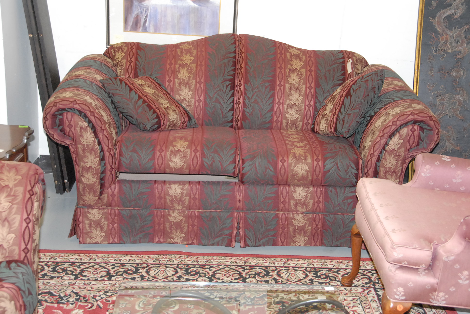 Upholstered sofa and love seat.