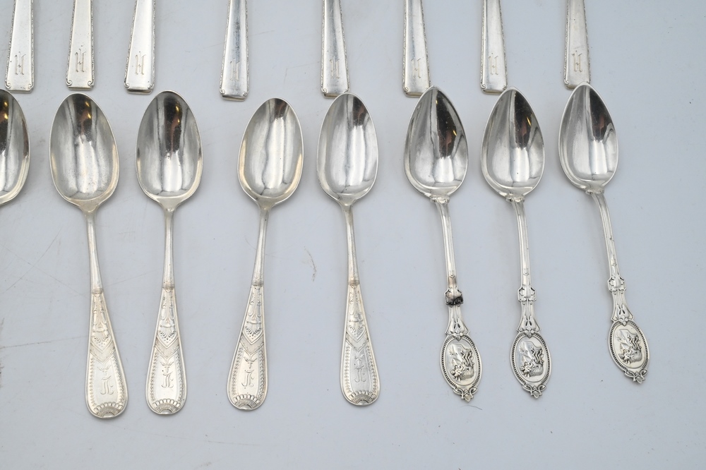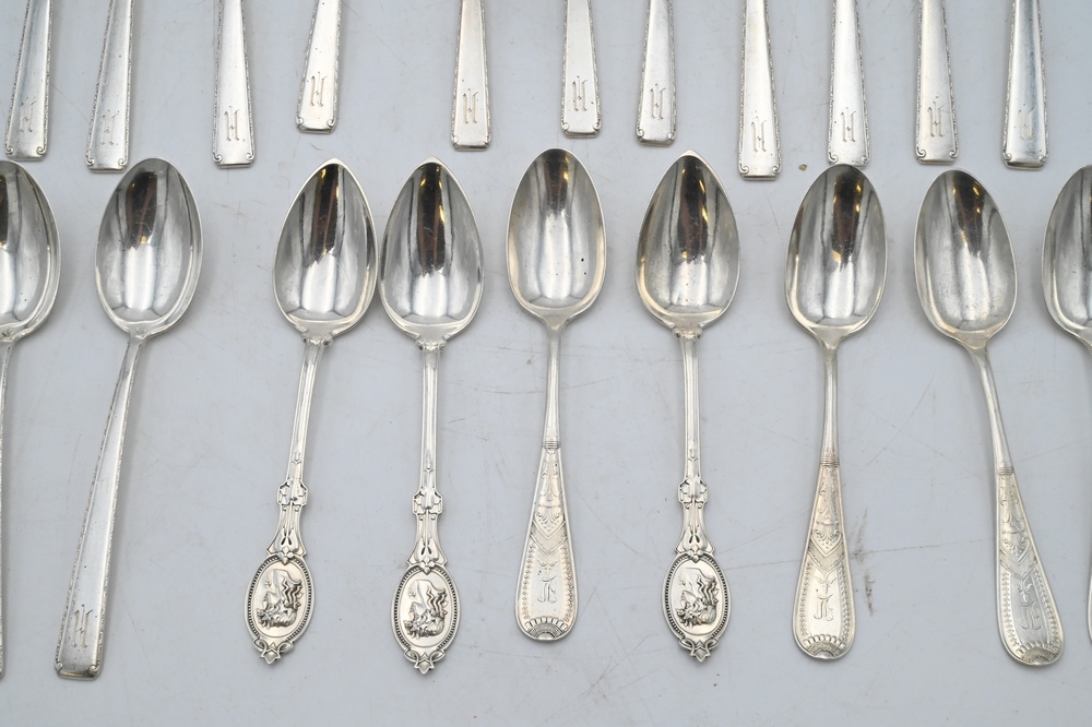 Group of Sterling Silver, to include a set of six medallion spoons, partial flatware set, etc., 28 t.oz.