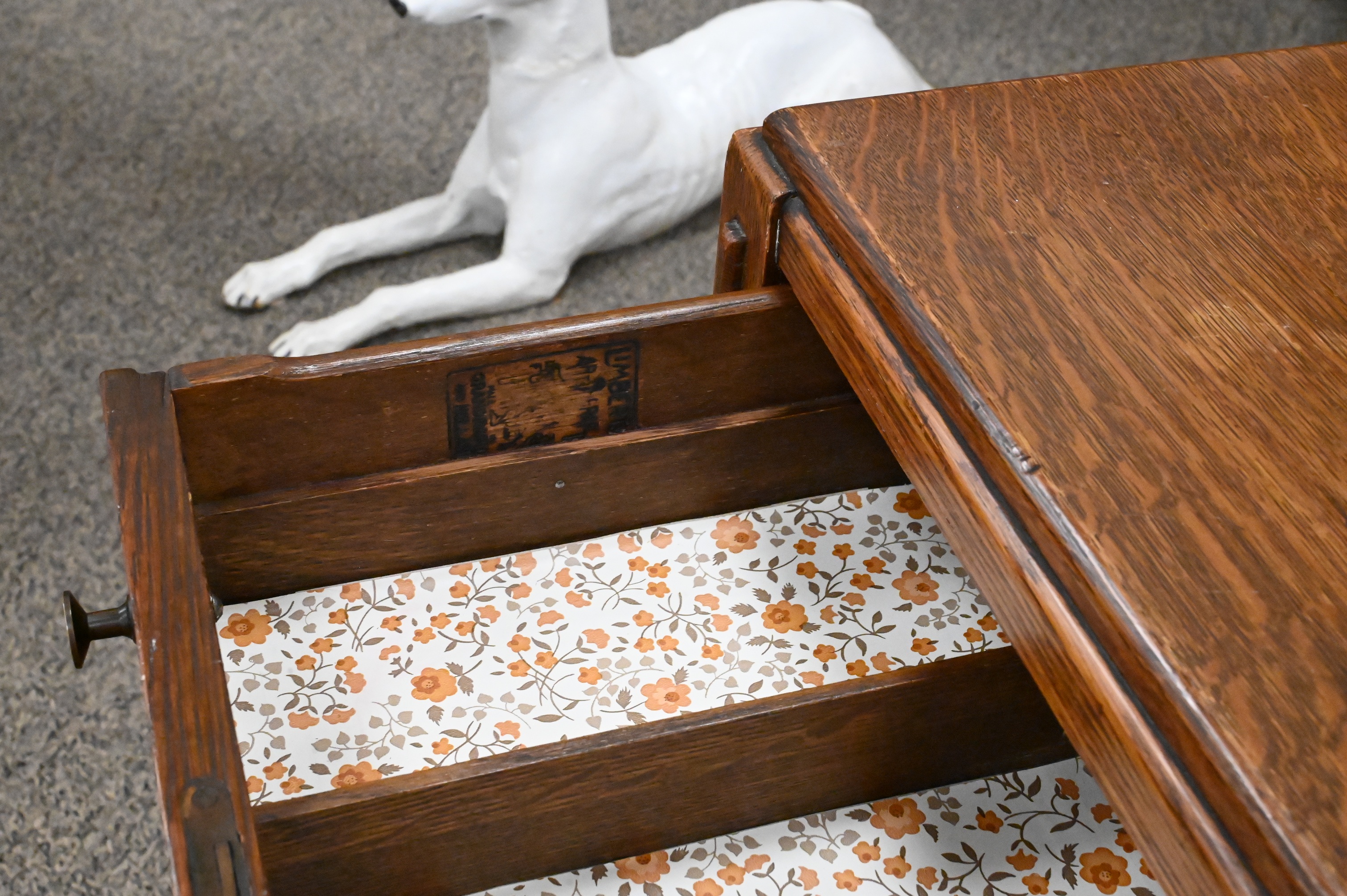 three over two drawers, copper pulls, Limbert’s stamp in top left drawer