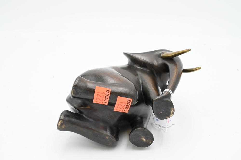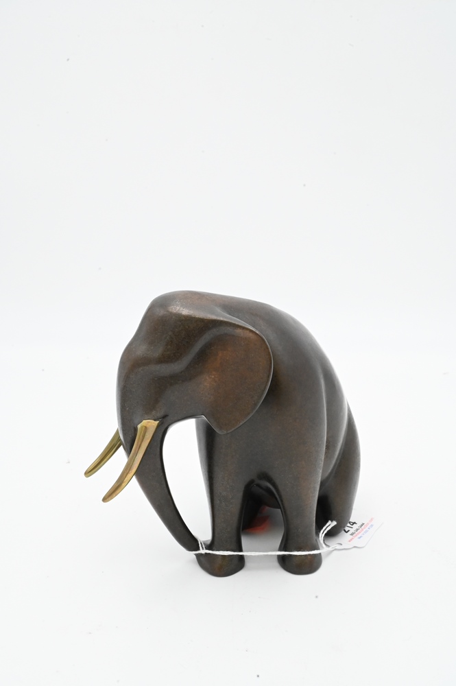 Lot 214: Loet Vanderveen Bronze Sculpture, kneeling elephant, signed Loet, edition #60/750, height 6 inches, width 8 inches, depth 4 inches.