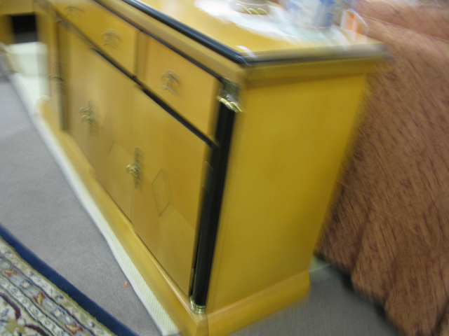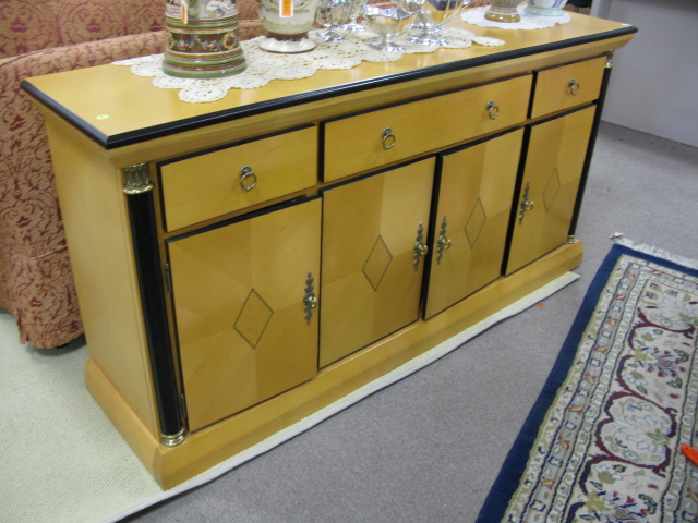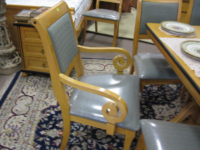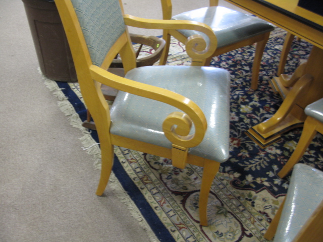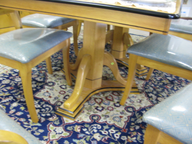 Twelve piece contemporary dining set to include ten chairs, two arm and eight side, a dining table with two leaves and sideboard.