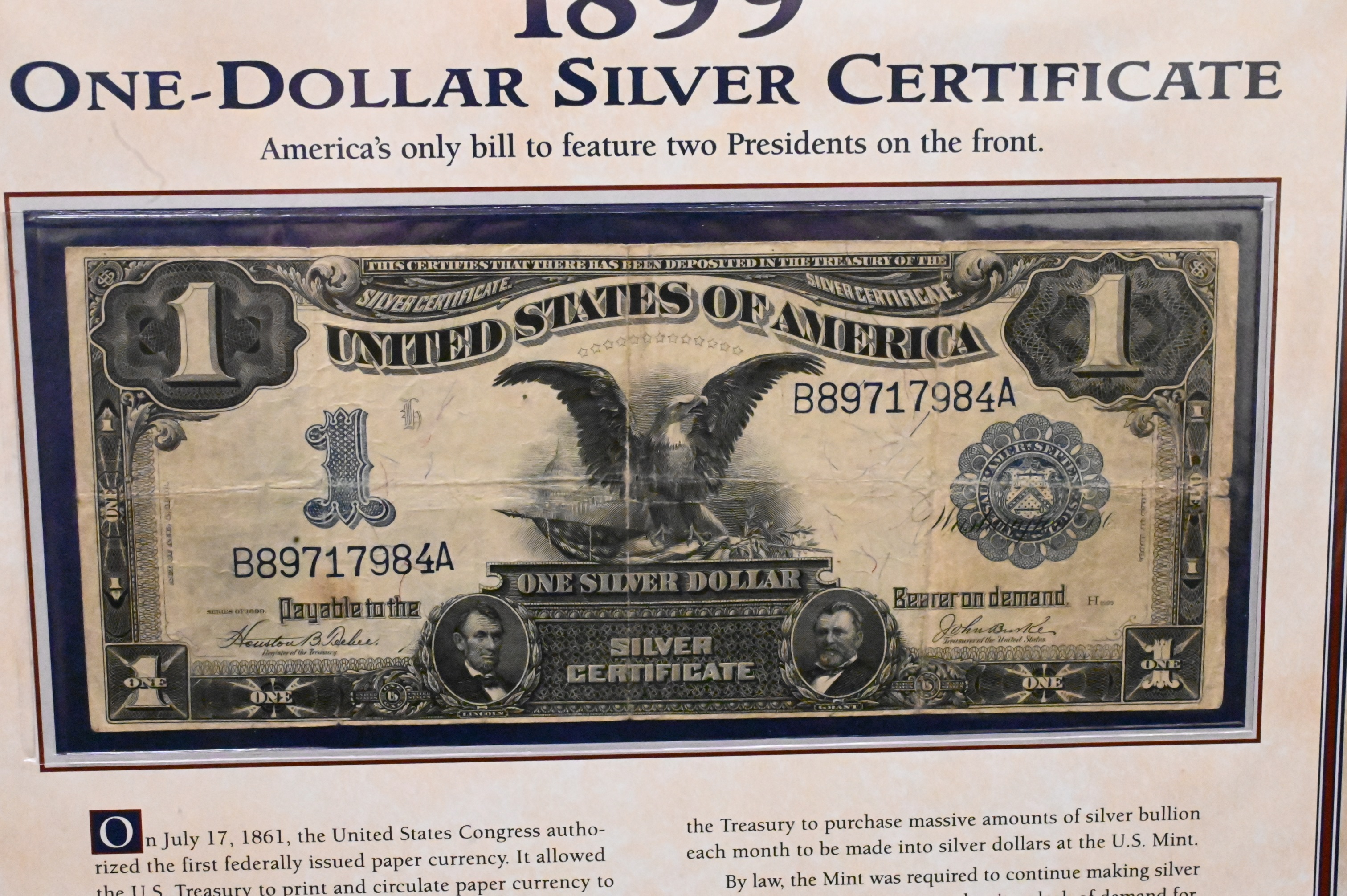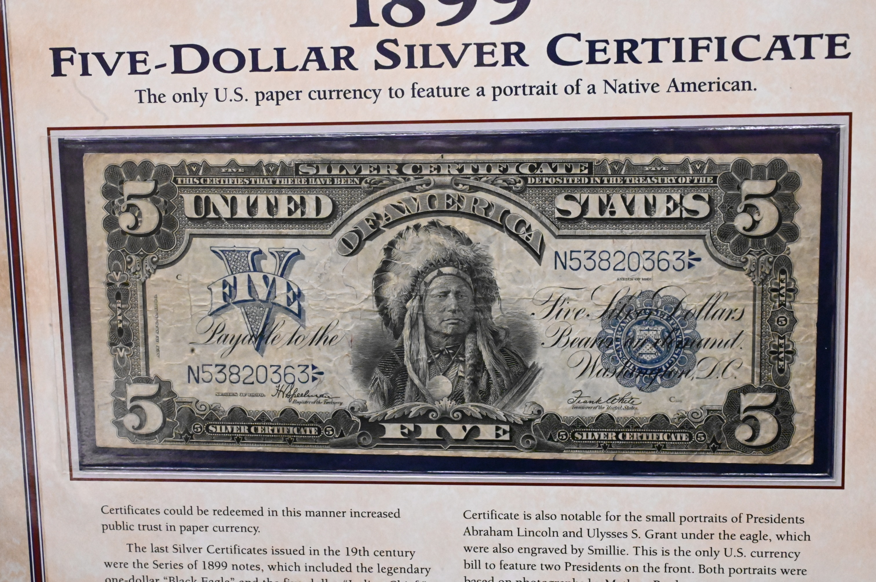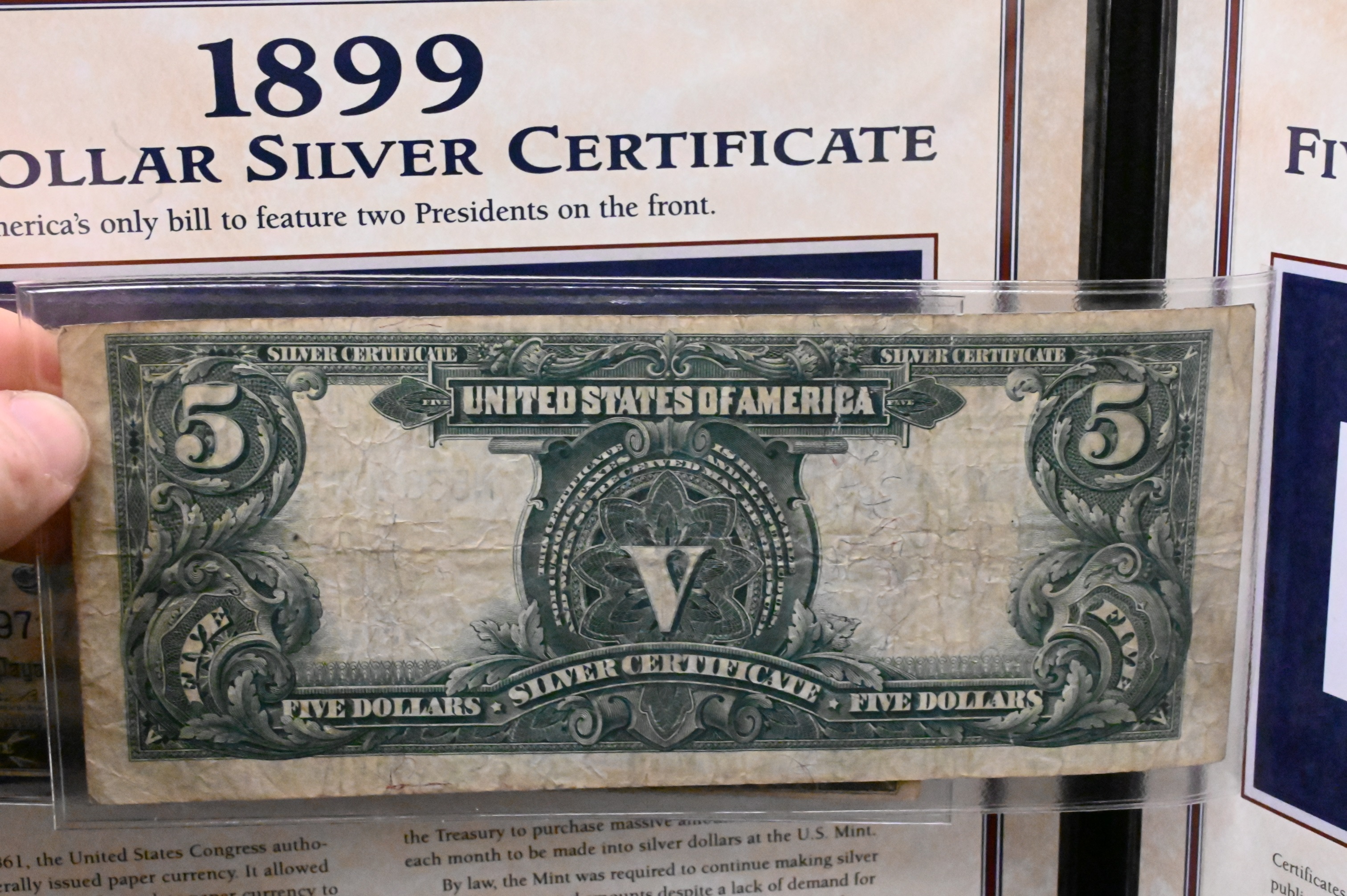 Two Notes, to include 1899 $1 Dollar Silver Certificate and One $5 Indian Speelman/White, in Fine