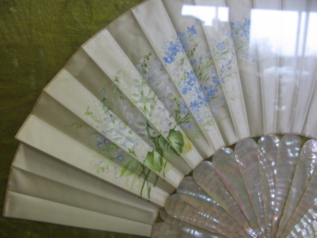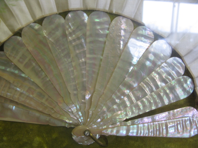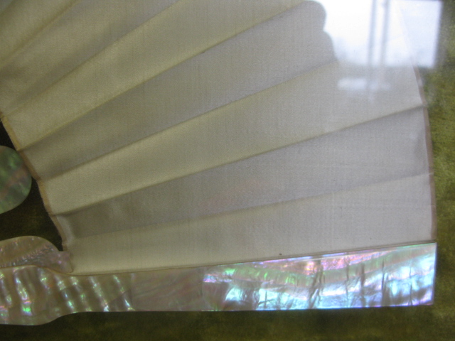 Two piece lot to include mother of pearl and silk fan in shadowed box case and etching of eagle signed Tuttle