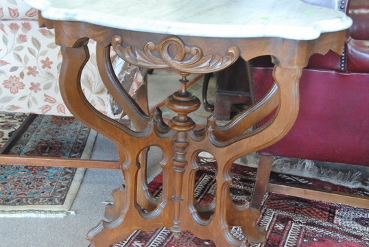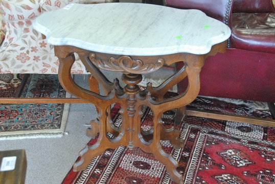 Victorian shaped marble top table, ht. 27 in. wd. 17 in. lg. 30 in.