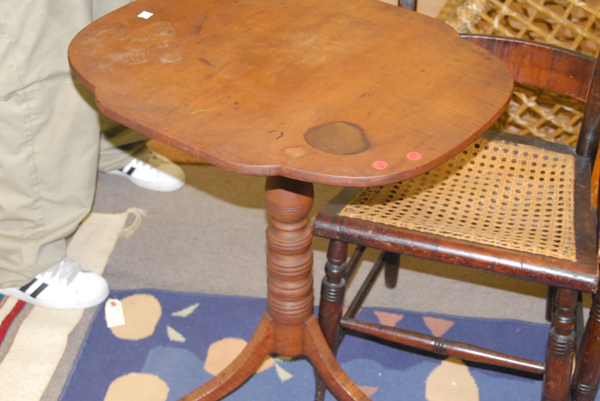 Three side chairs, one shaped top candlestand, and one Victorian tall mirror.