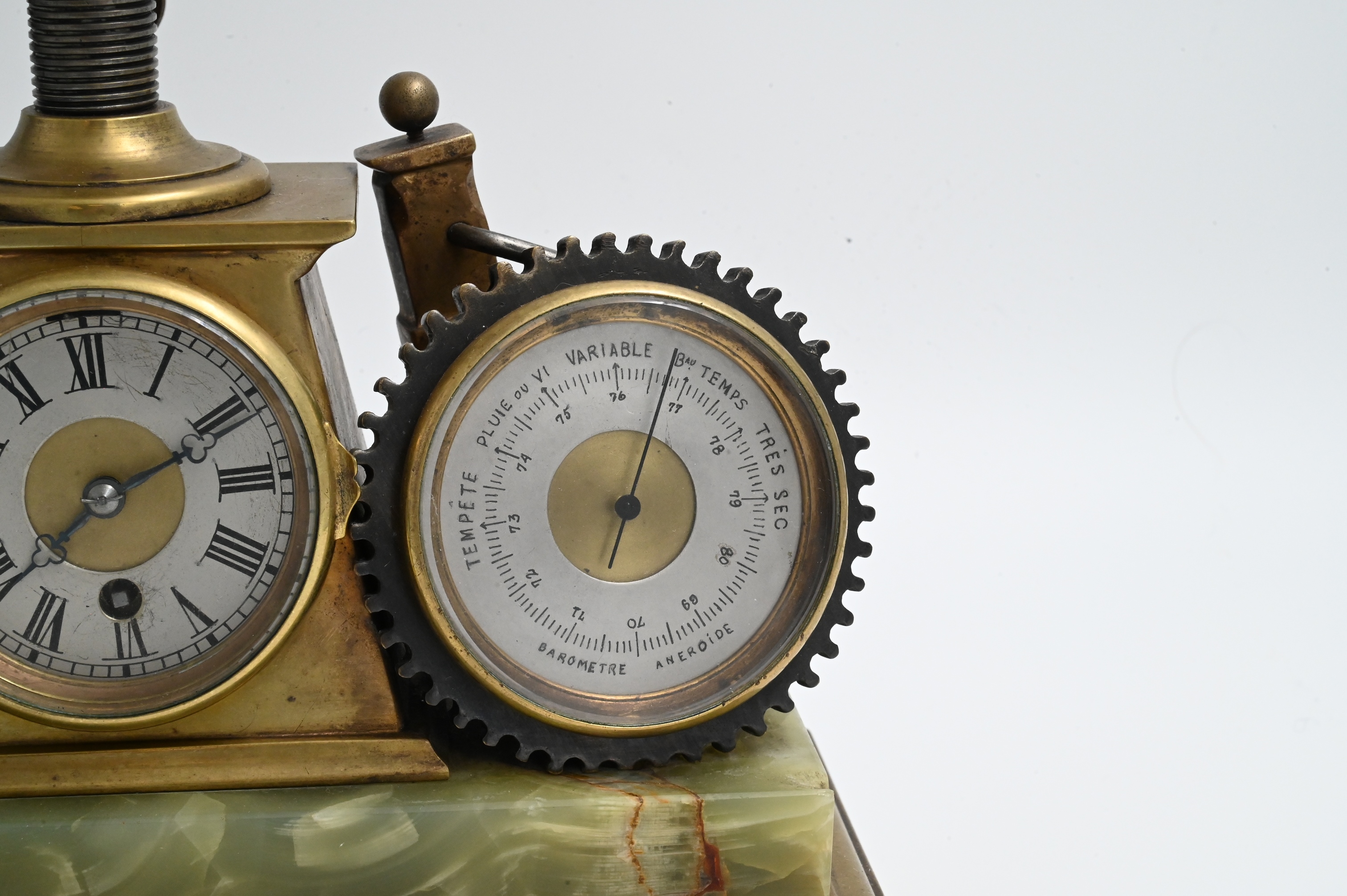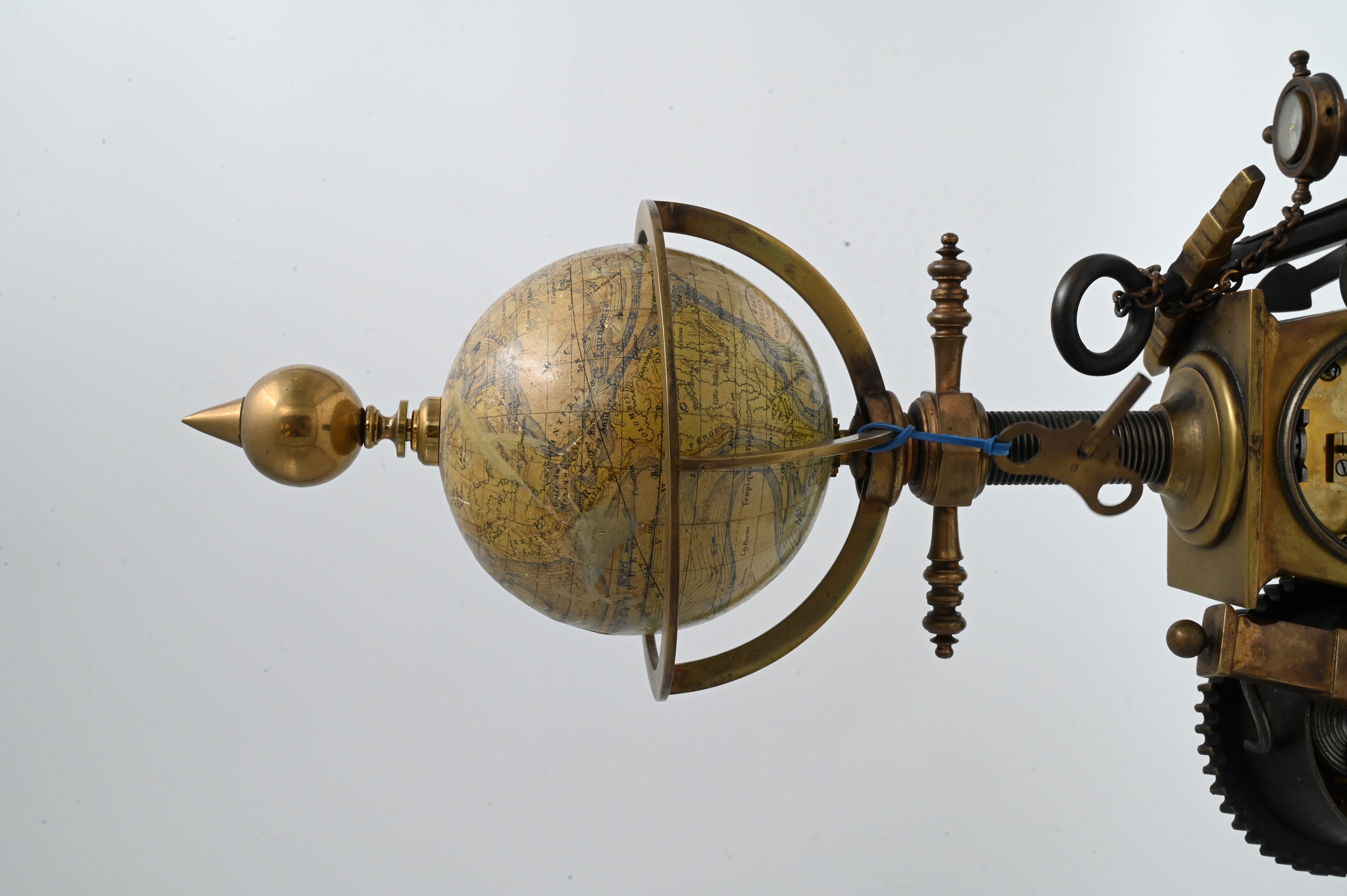 bronze with anchor, barometer, compass, spinning globe, marked 1847