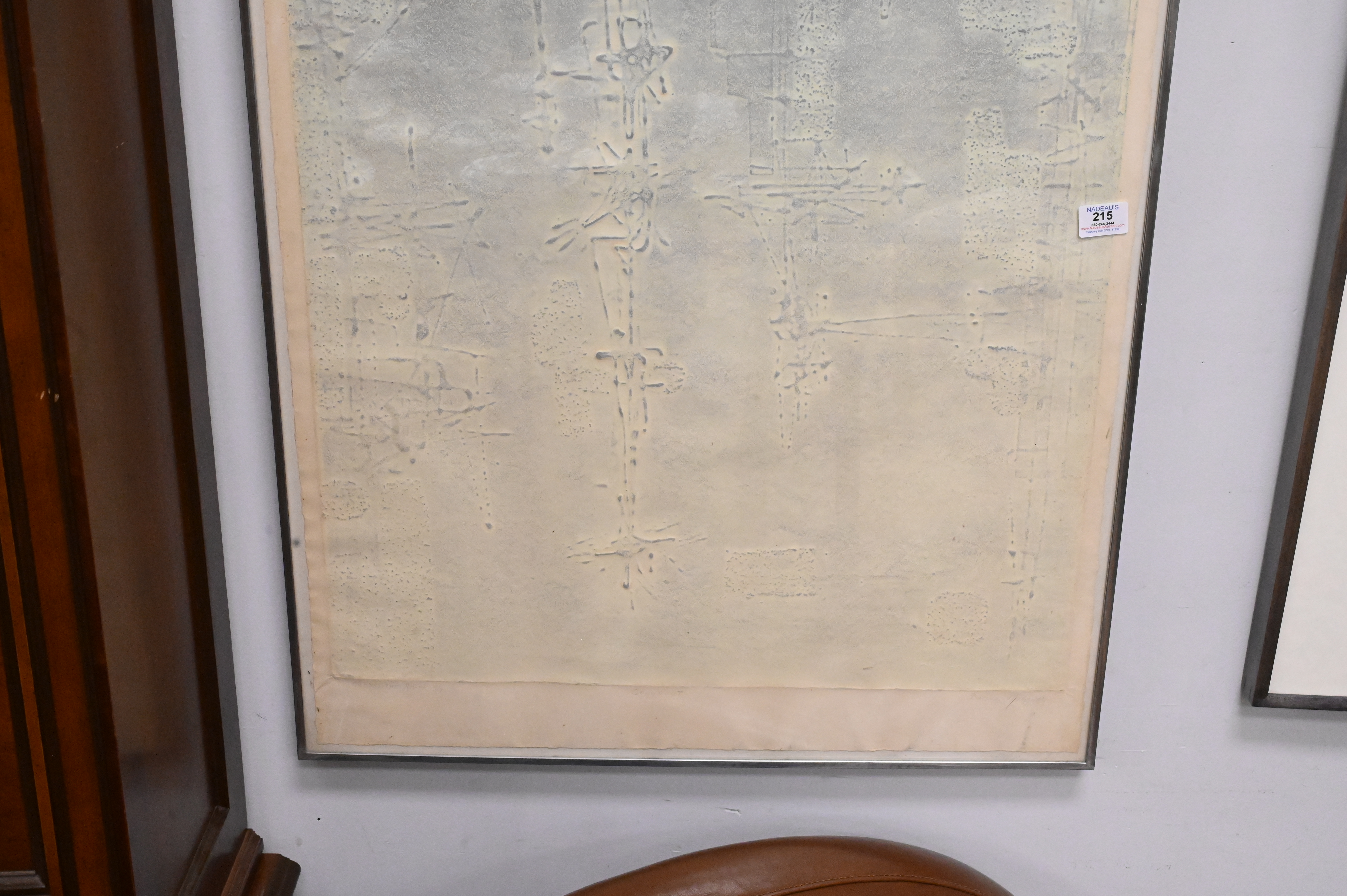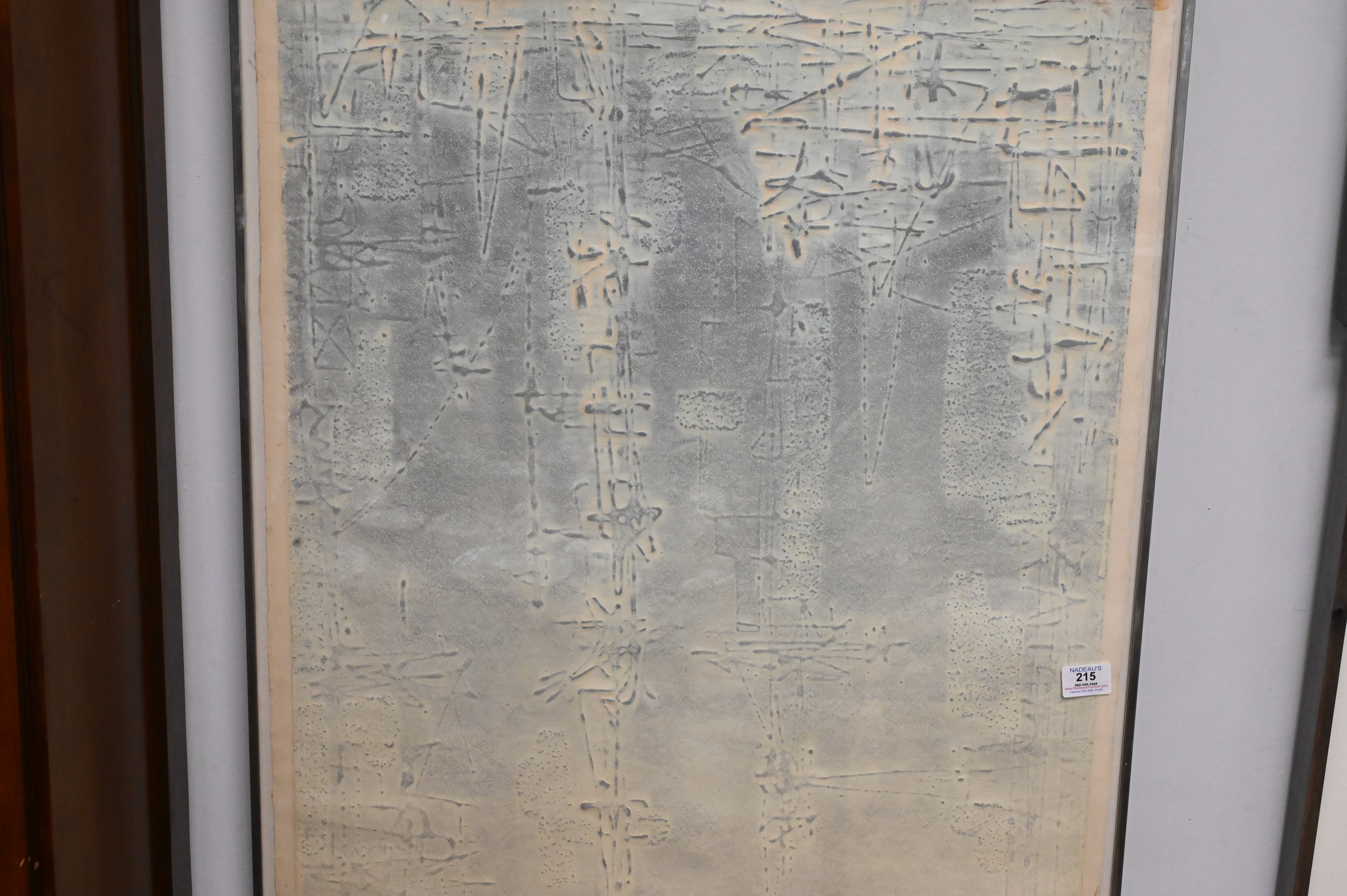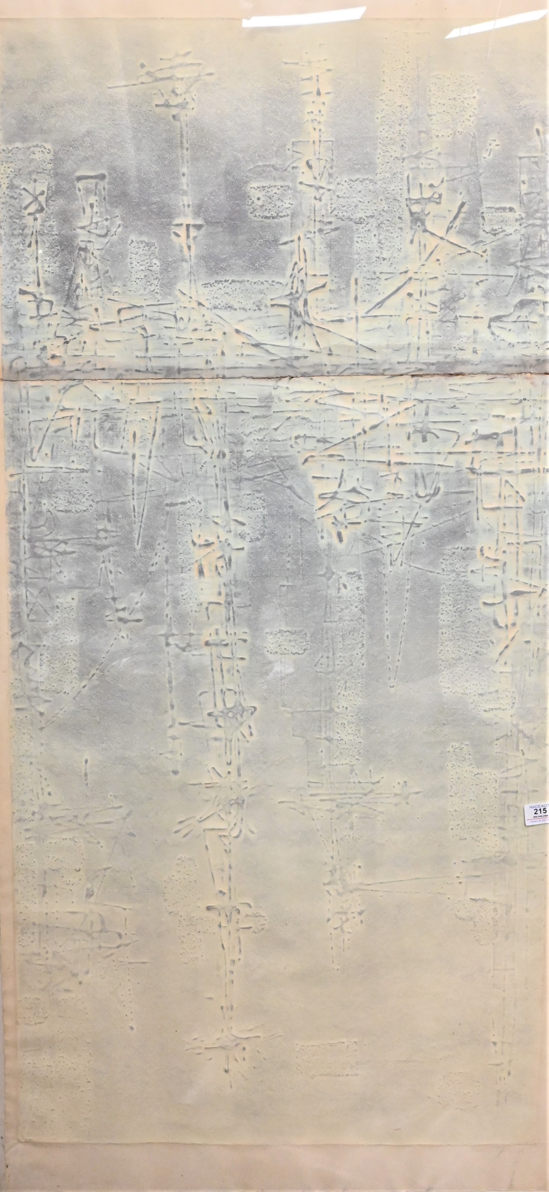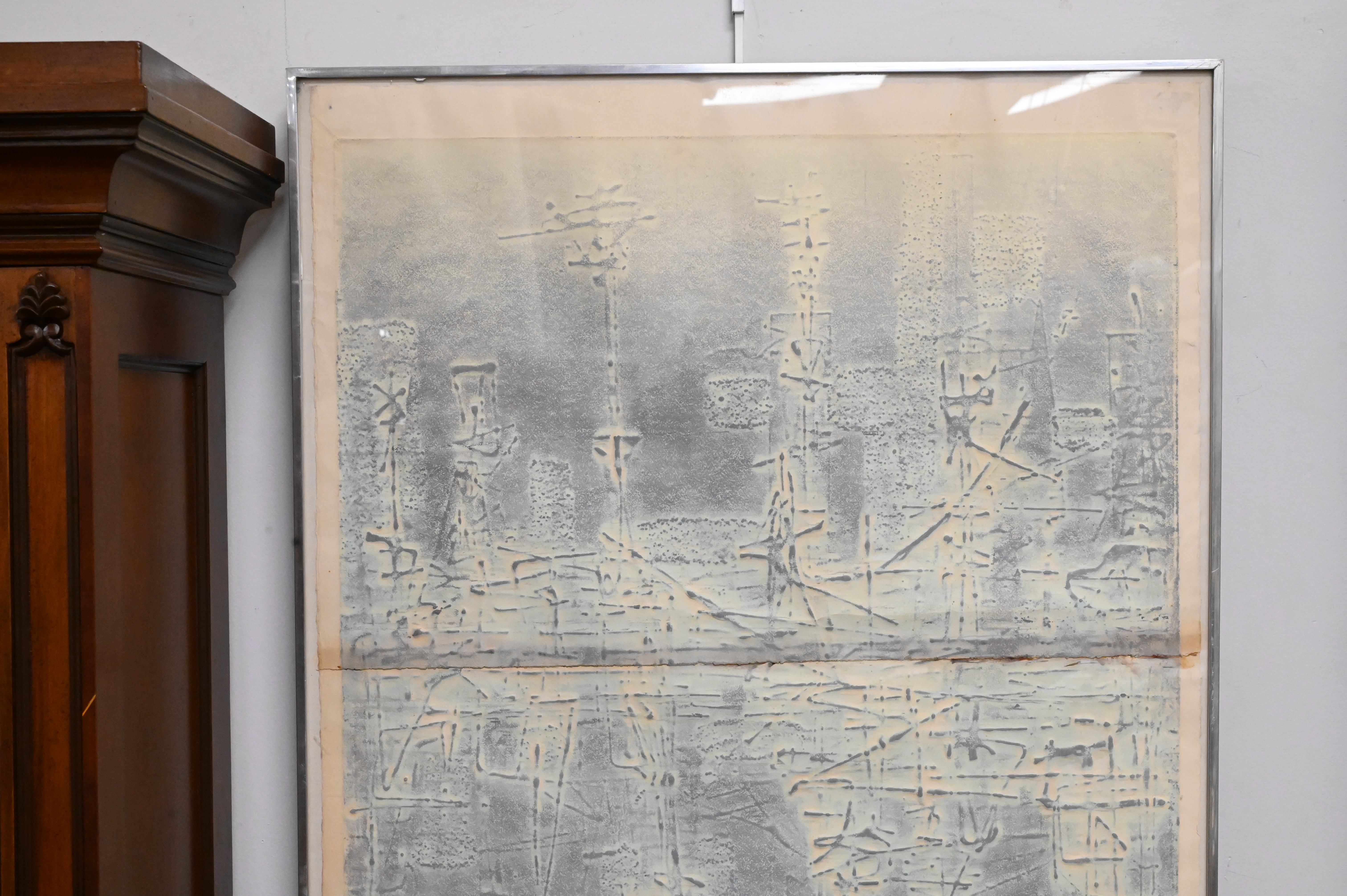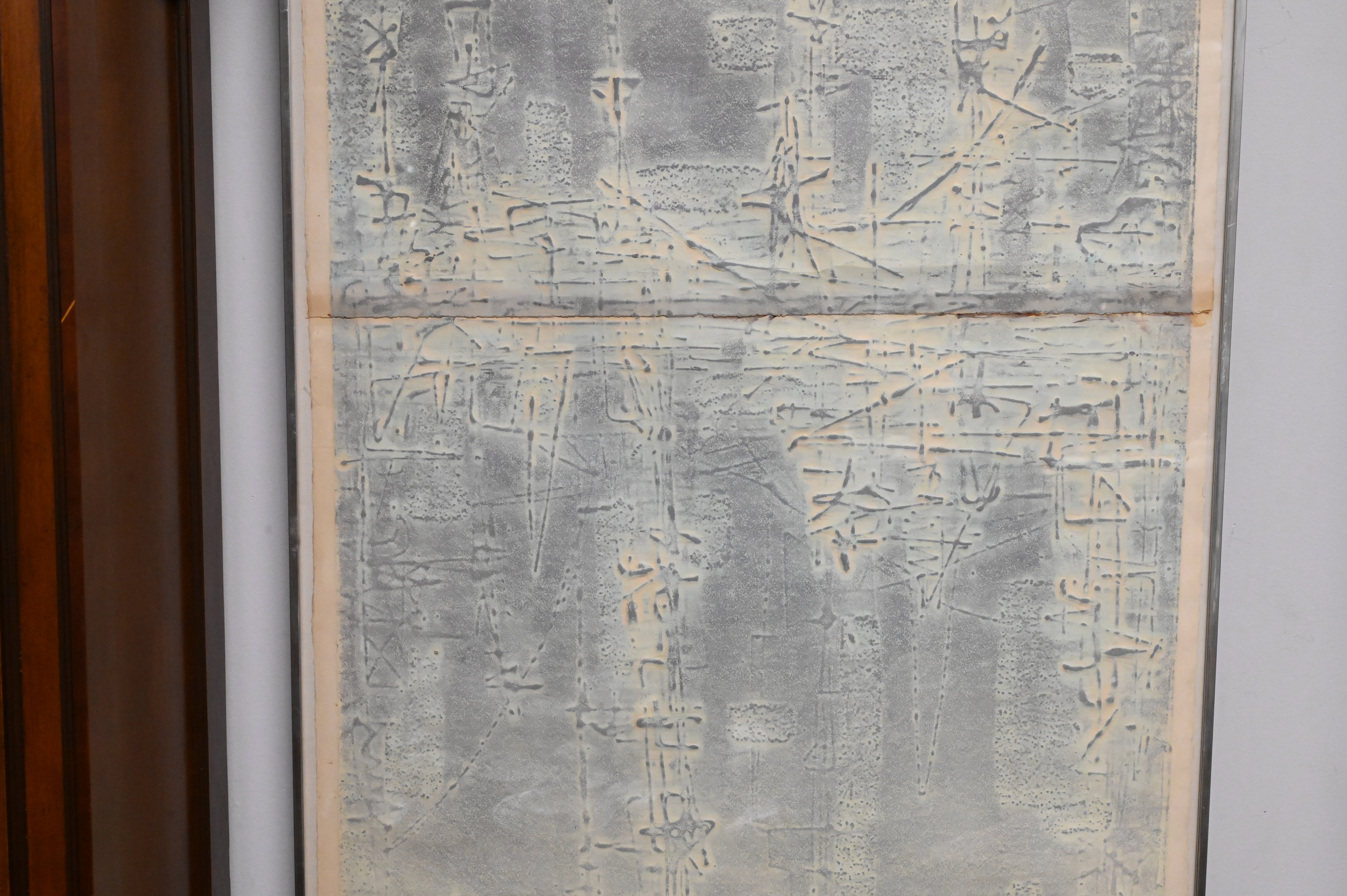 Boris Margo (American,1902-1995), (born in Russia), cellocut, ‘Across the River’, signed lower right, titled and numbered lower left, original label on back, as is, paper size 56″ x 26″.