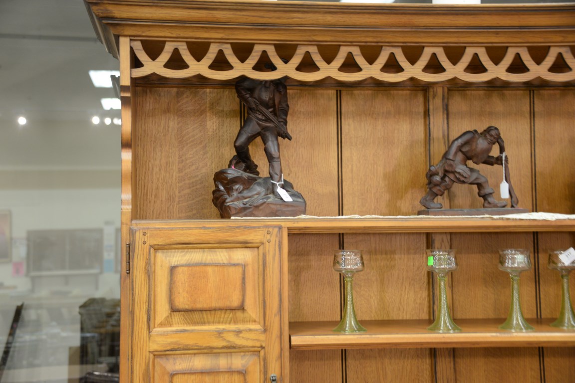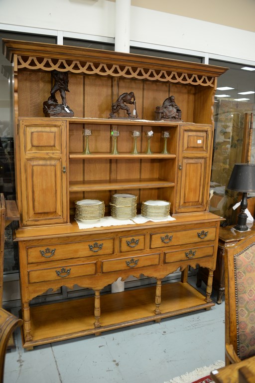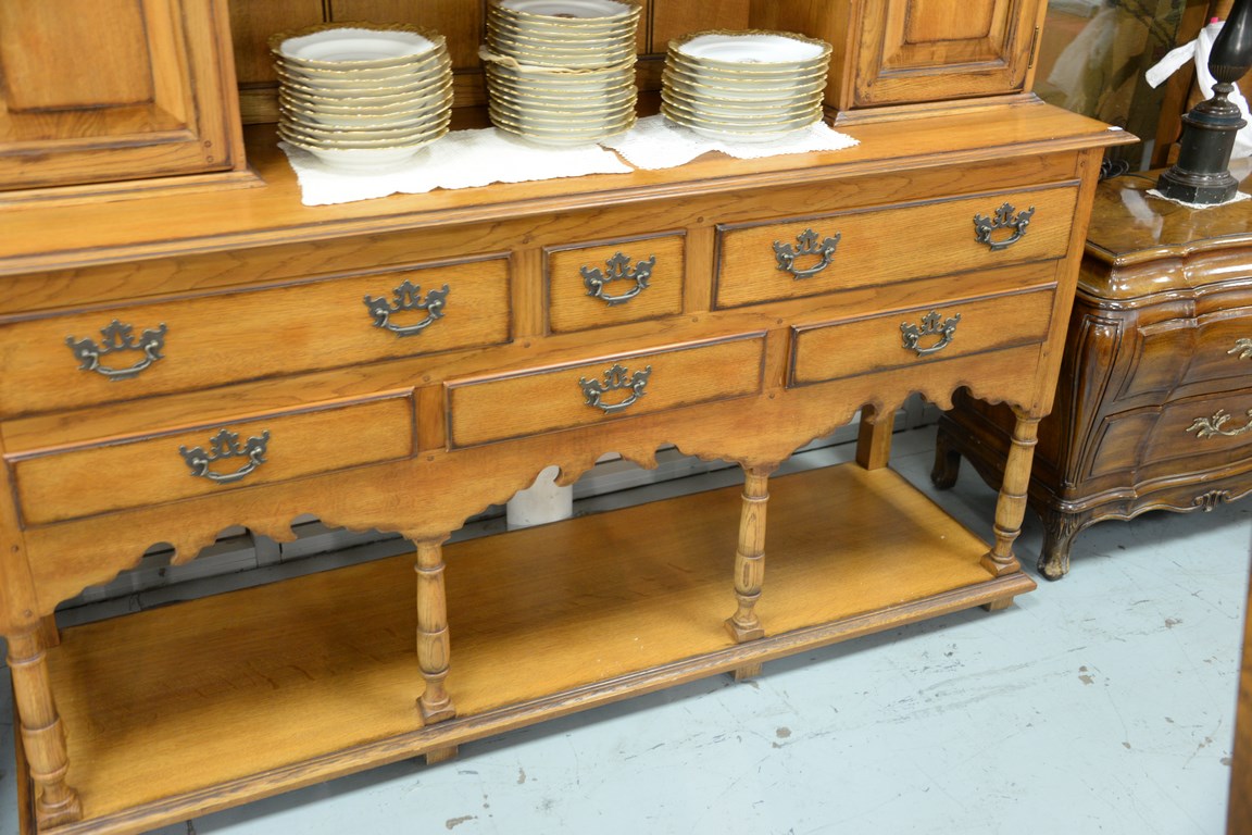 Drexel oak sideboard with open top. ht. 85 in. wd. 68 in. dp. 20 in.