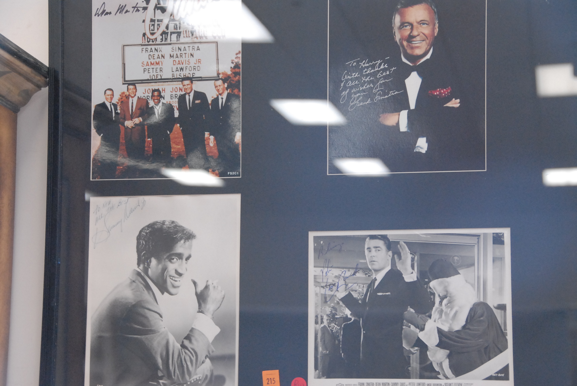 Group of photographs signed by the Rat Pack, Sinatra, Martin, Davis, Lawford, and Bishop.