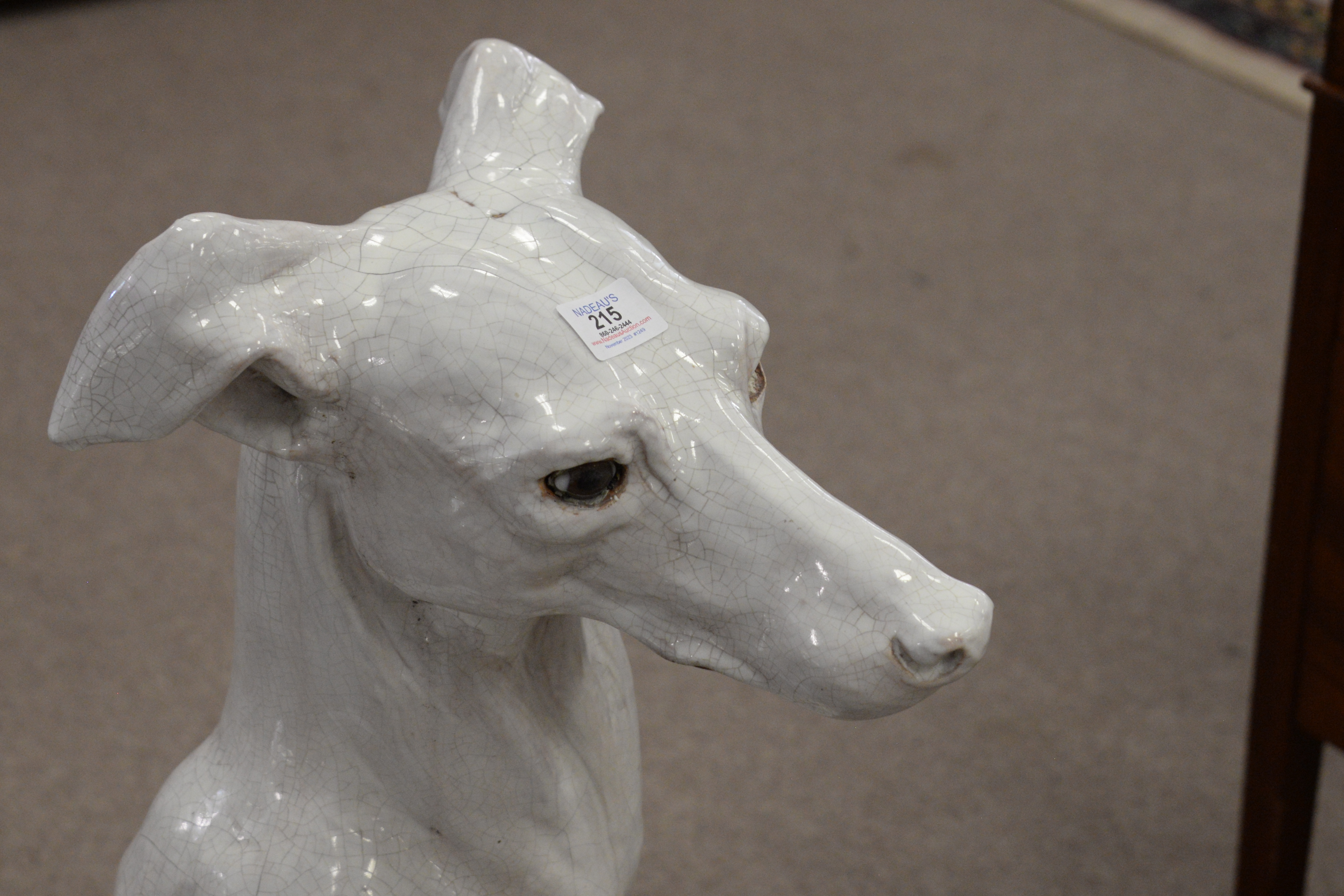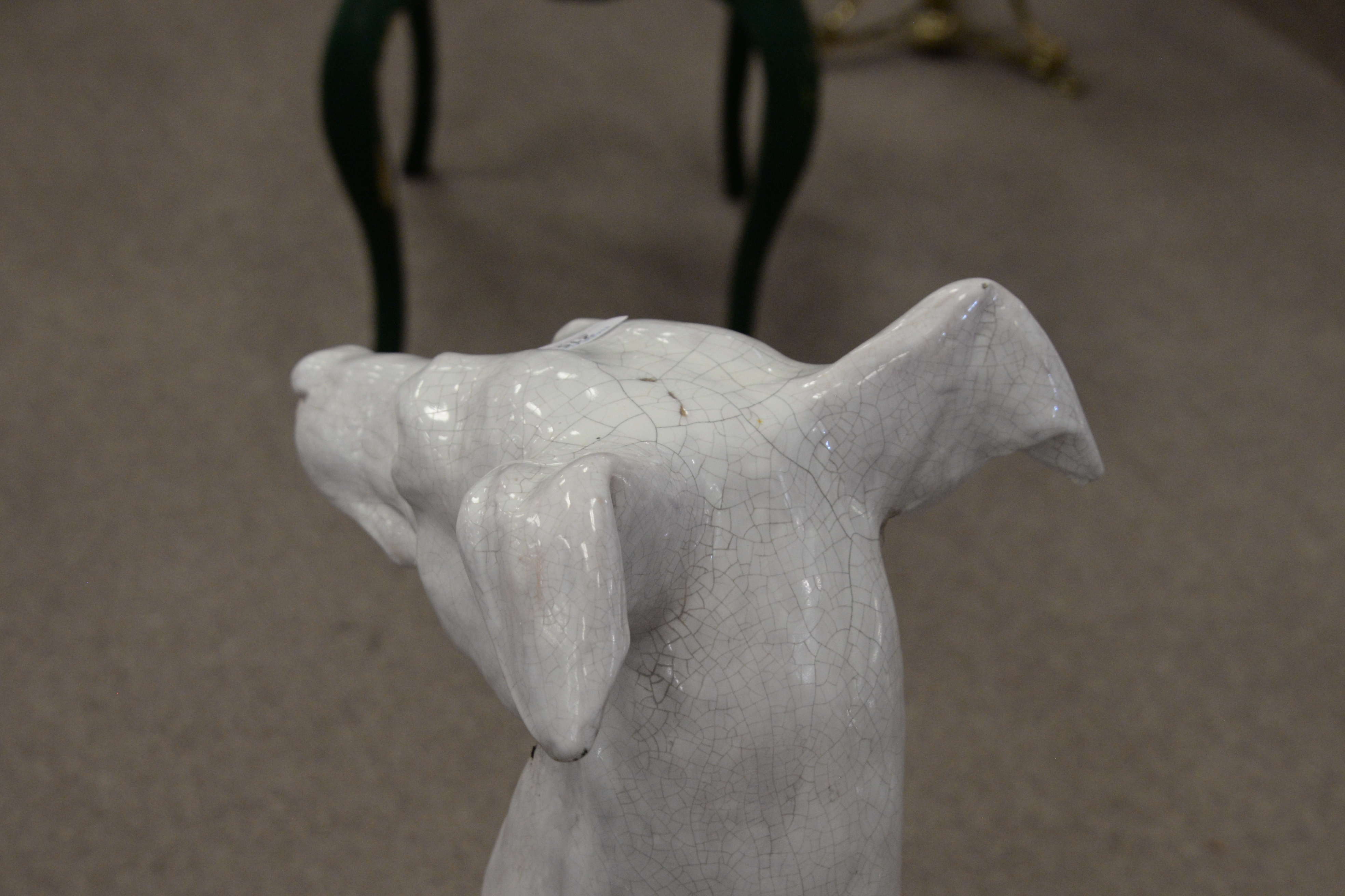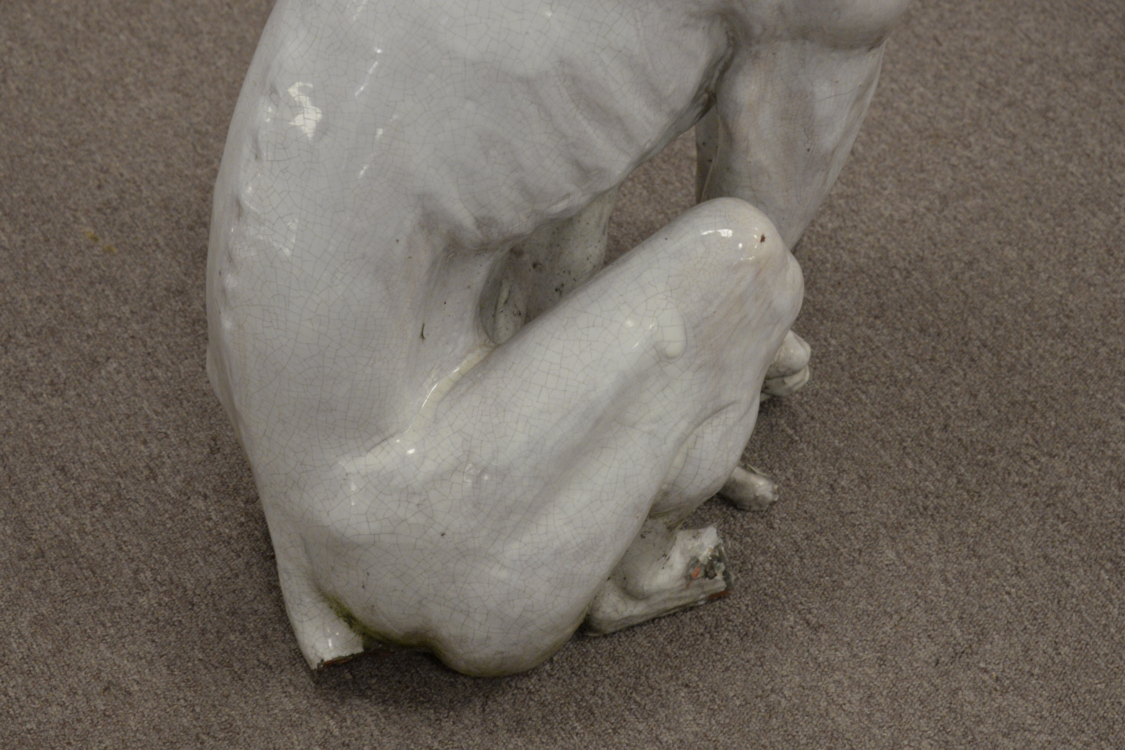 Porcelain Dog Figure, tail and three toes broken off (some pieces available), height 36 inches