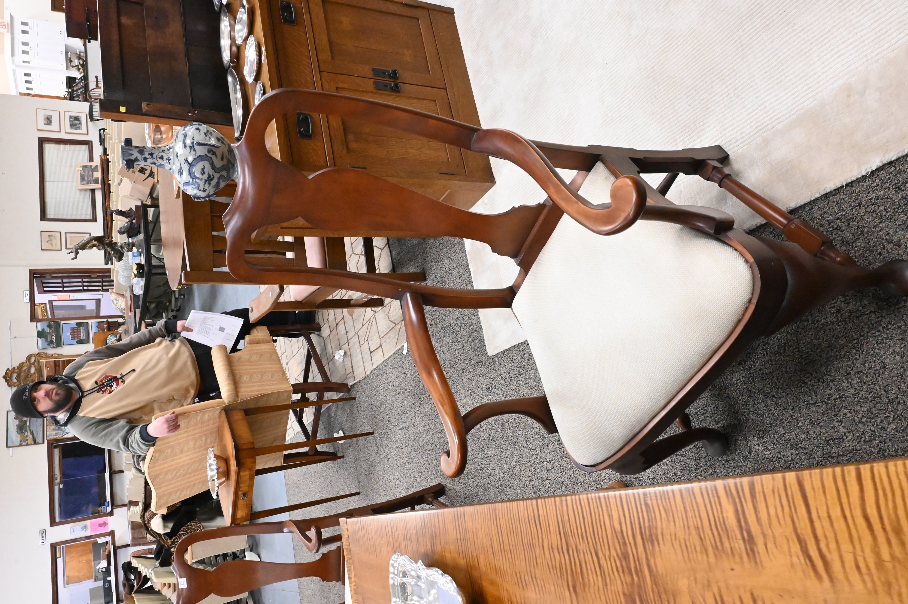 Lot 215: Set of Four Eldred Wheeler Queen Anne Style Cherry Armchairs