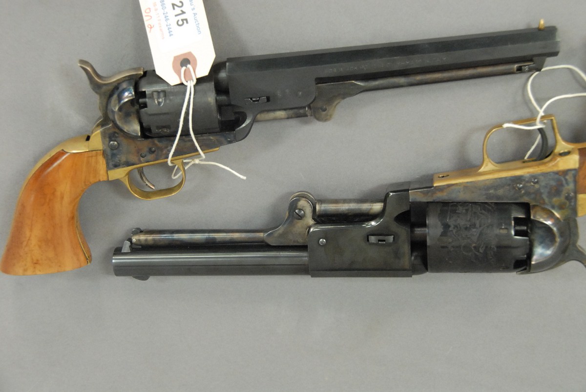 Two piece lot to include reproduction Uberti of a Colt 1st model dragon percussion pistol, .44 and reproduction Armi San Paolo of a colt 1851 Navy percussion pistol, .36 caliber.
