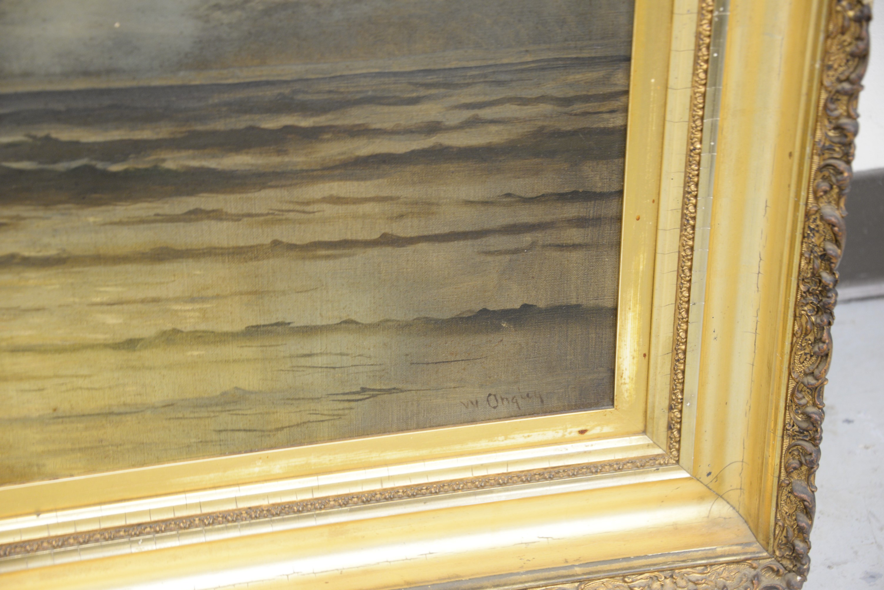 Lot 215: William Ongley 1836-1890 Seascape oil on canvas signed lower right W. Onlgey 20 x 30