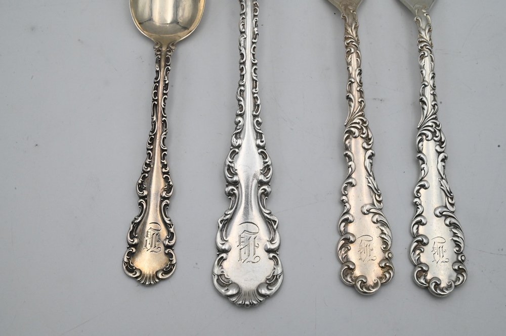 Lot 216: 30 Piece Set of Wallace and Towle Sterling Silver Flatware, “Waverly Mono” and “Old Master” patterns, to include 12 dinner forks (Wa…