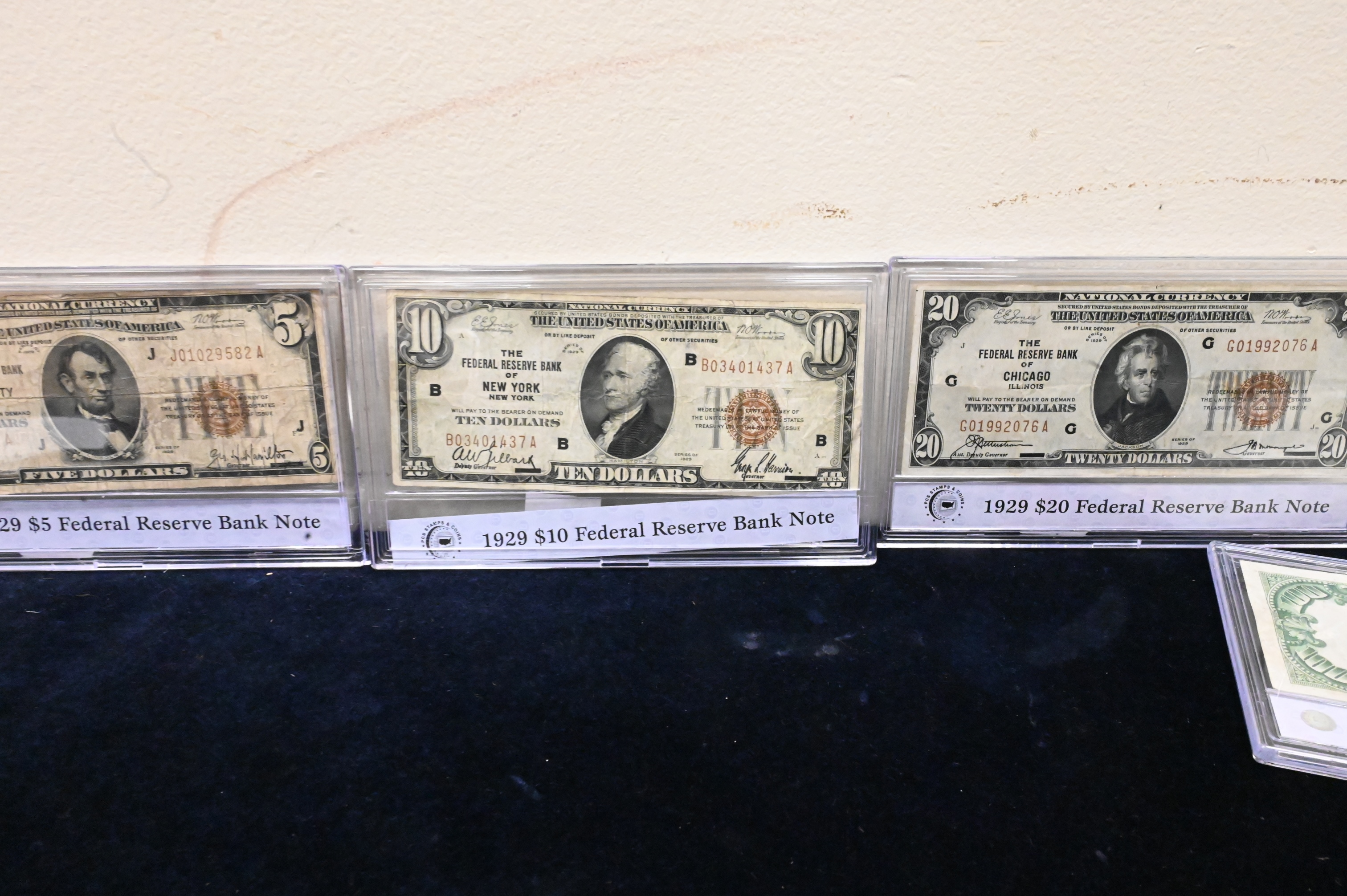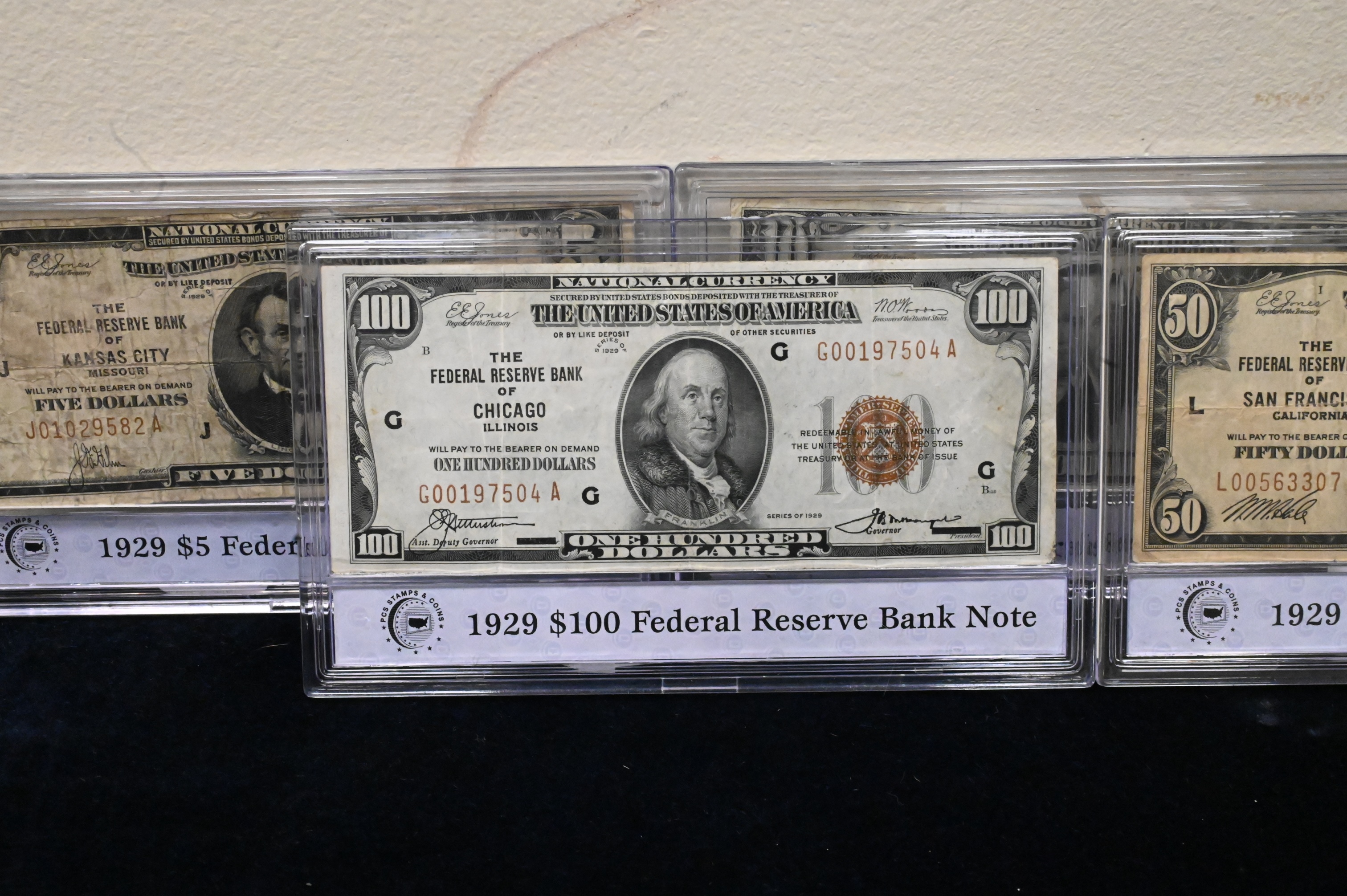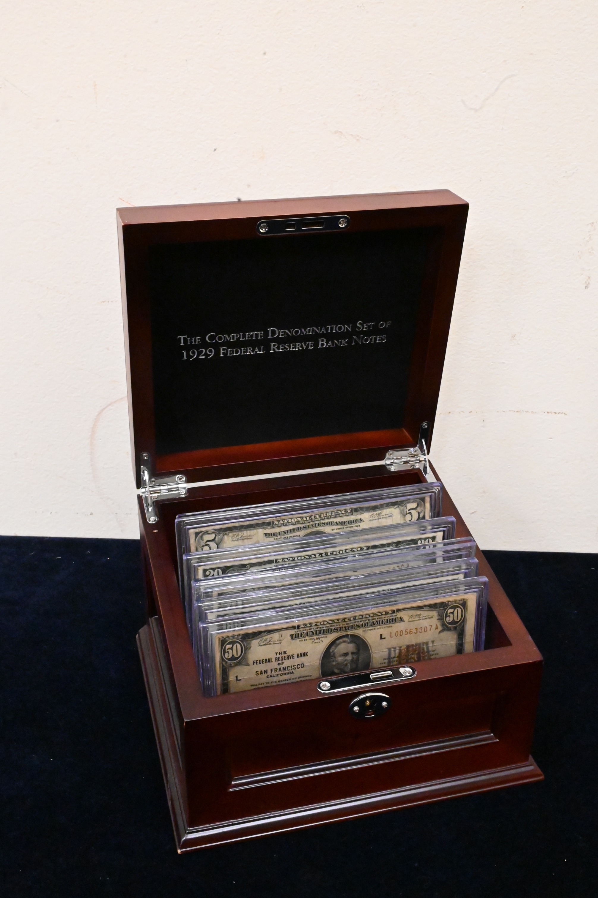 Complete Denomination Set of 1929 Fed Reserve Notes, national currency $100, 50,20,10, and 5 in a presentation box