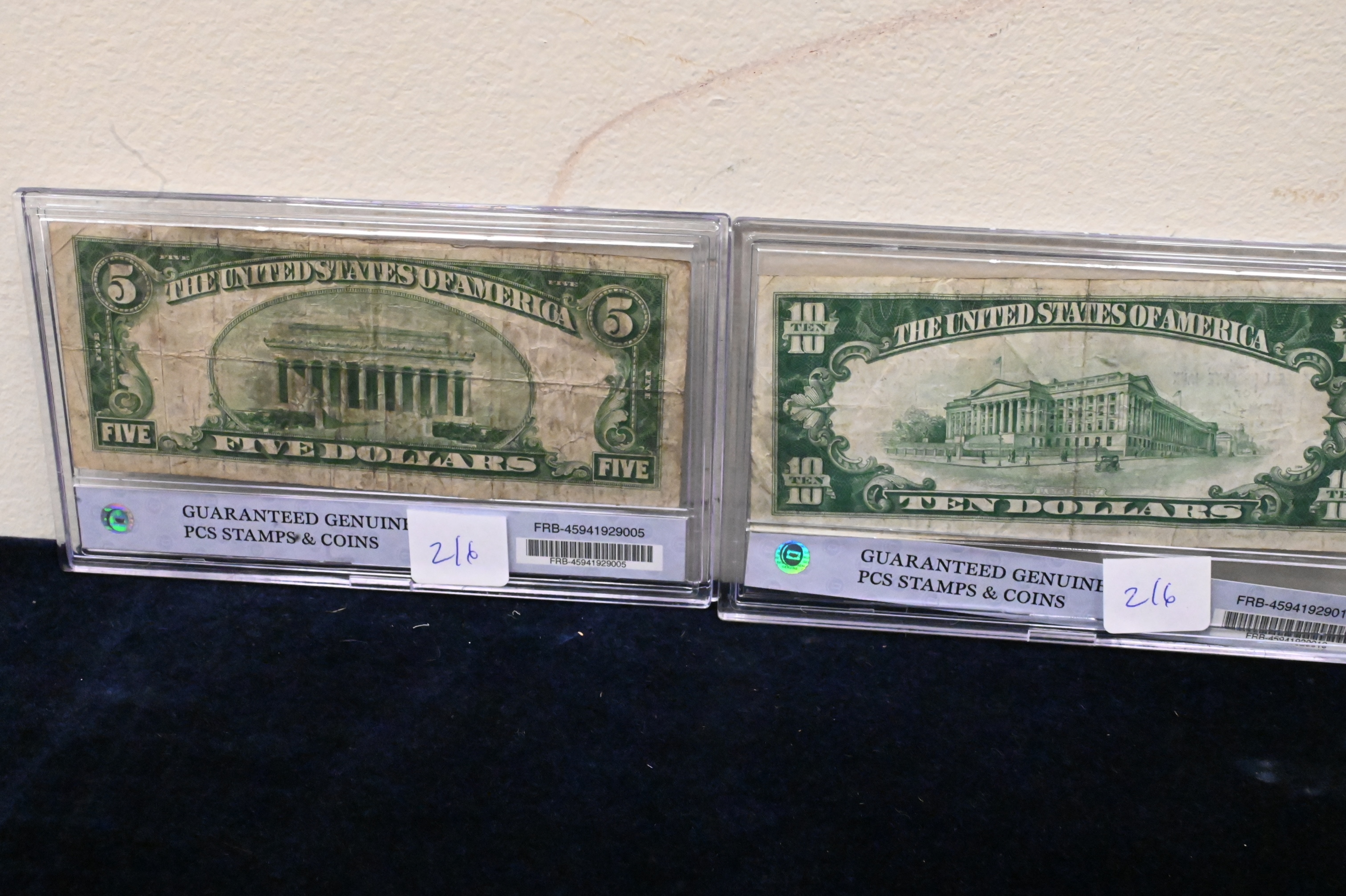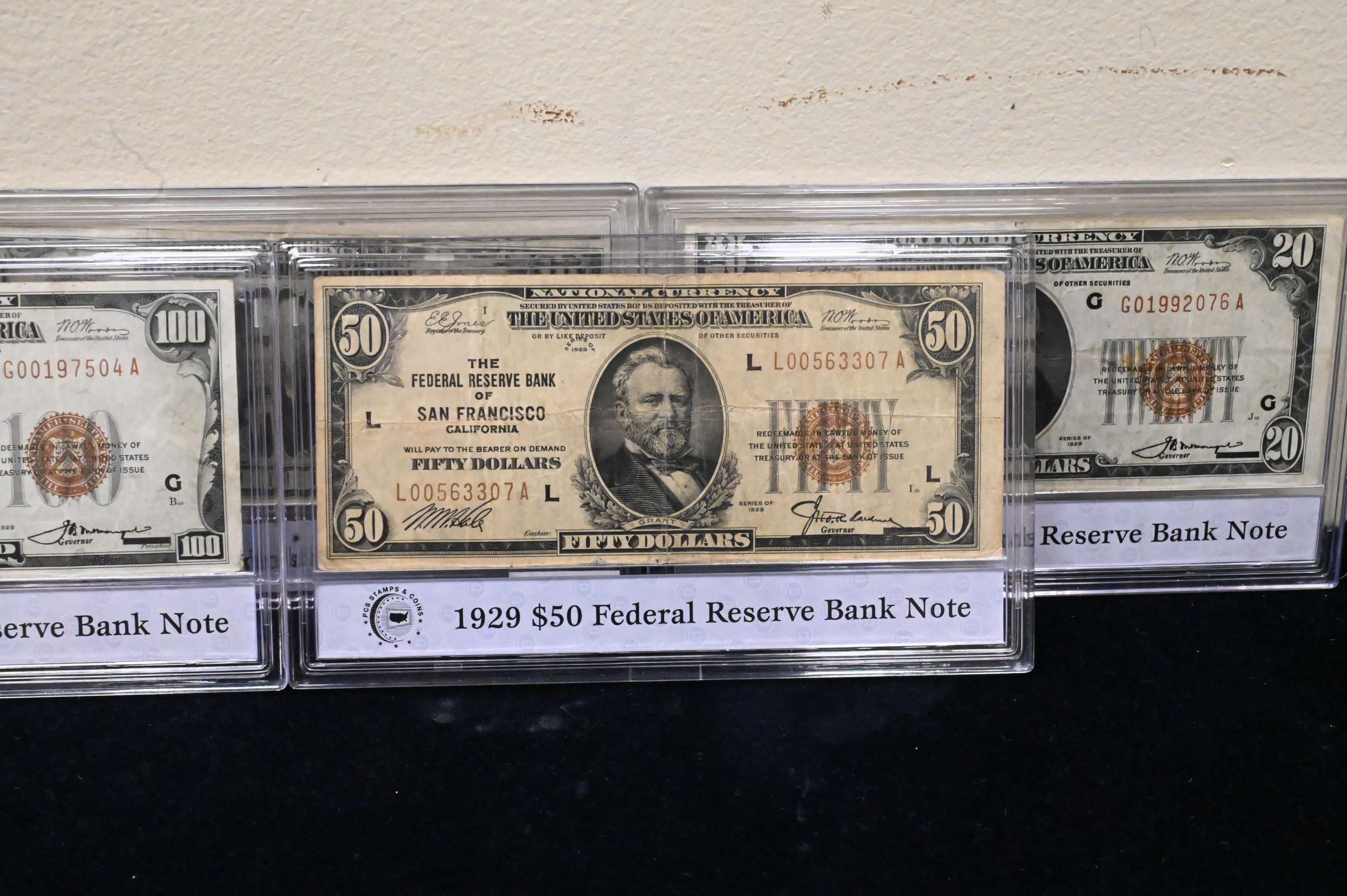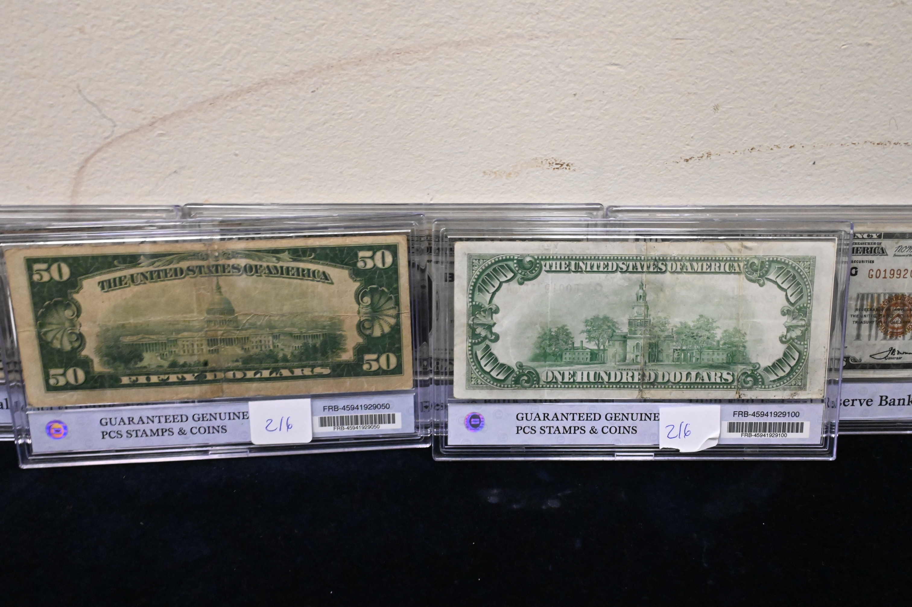Complete Denomination Set of 1929 Fed Reserve Notes, national currency $100, 50,20,10, and 5 in a presentation box