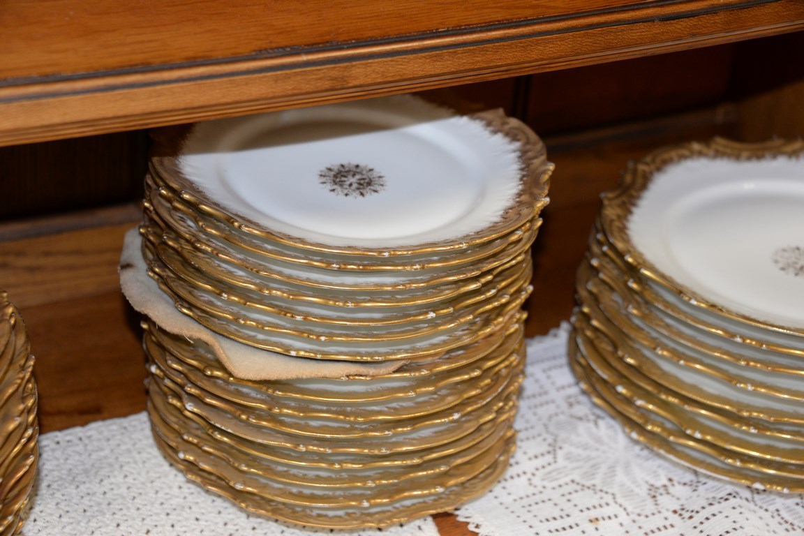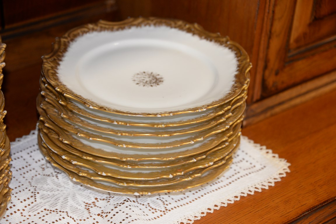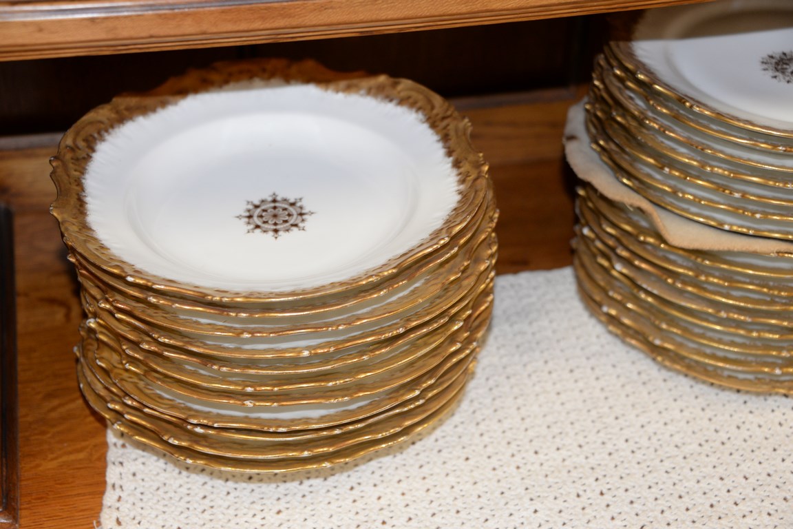 Lot 216: Gold trimmed Limoges china platters, bowls, plates, etc. plate: dia. 6 in. platter: lg. 16 in. and 18 in.
