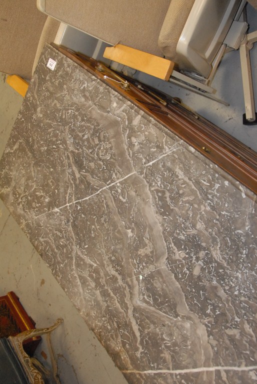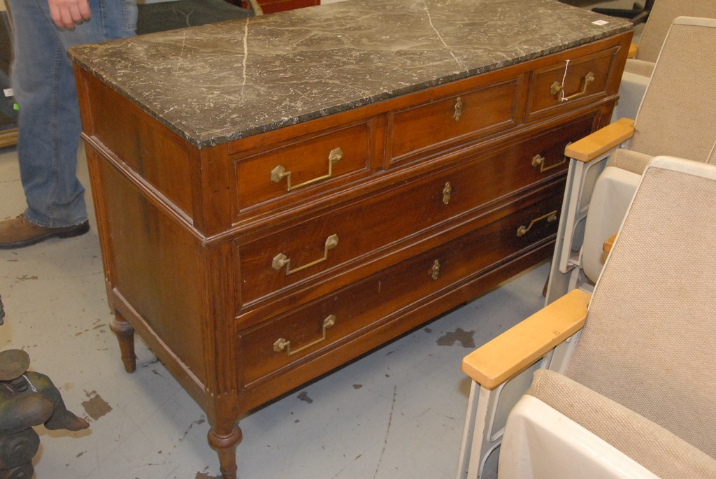 Lot 216: Louis XVI brass mounted walnut commode with a molded rectangular gray and white marble top above three long drawers with the drawer….