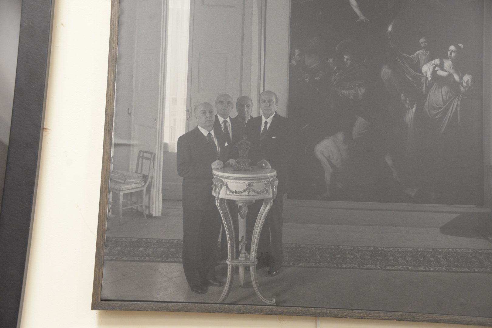 Patrick Faigenbaum French, b. 1954, Familles d’Aquino di Caramanico, Caracciolo di Avellino, Buccino Grimaldi di Bisaccia Sersale, Napers, 1991 gelatin silver, printed 1991 signed, titled, dated, and editioned ‘213’ in pencil on the backing board, 34 1/4 x 31, with a Barbara Gladstone Gallery label adhered to backing board, as is with upper edge peeling away from mount.