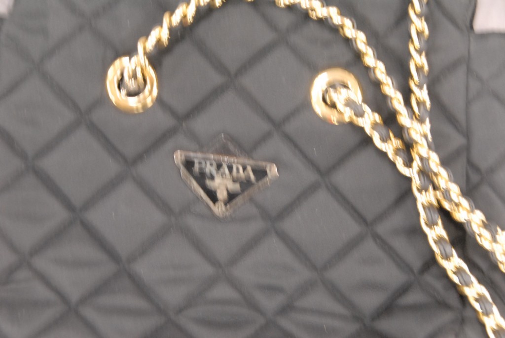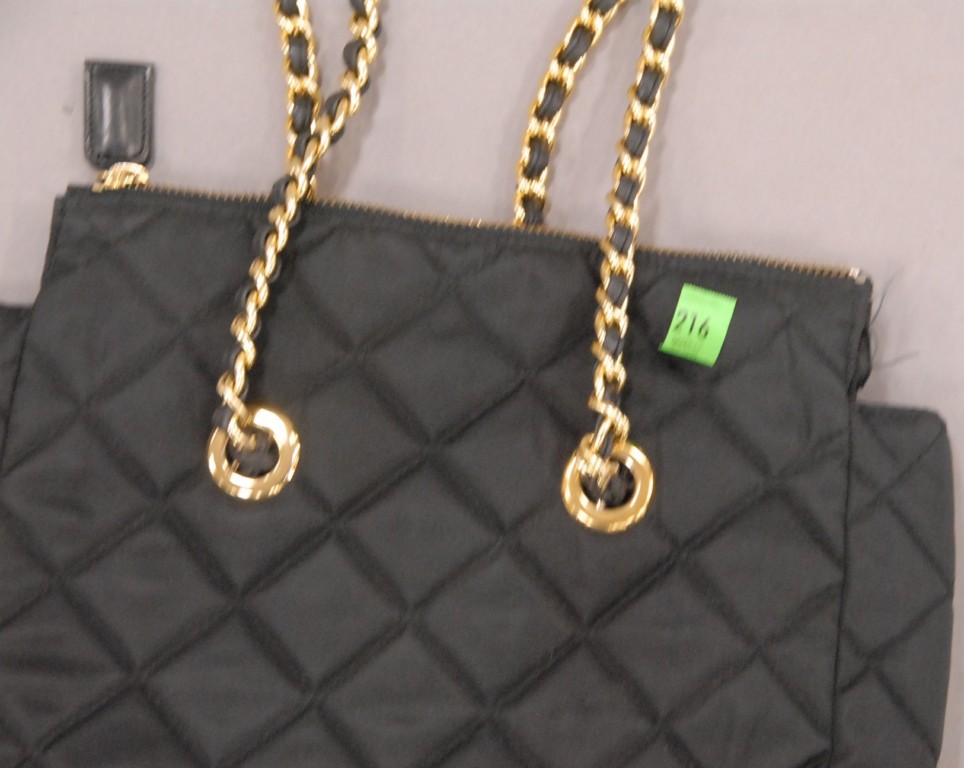 Prada Milano black nylon and chain shoulder bag, ht. 10.