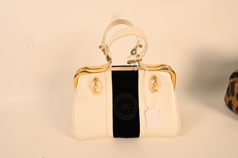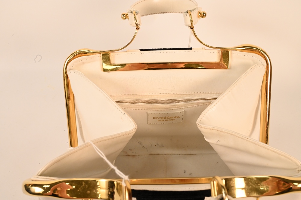 Lot 216: Roberta di Camerino Black and White Leather Satchel, having velvet stripe, gold tone hardware, single compartment bag with two inter…