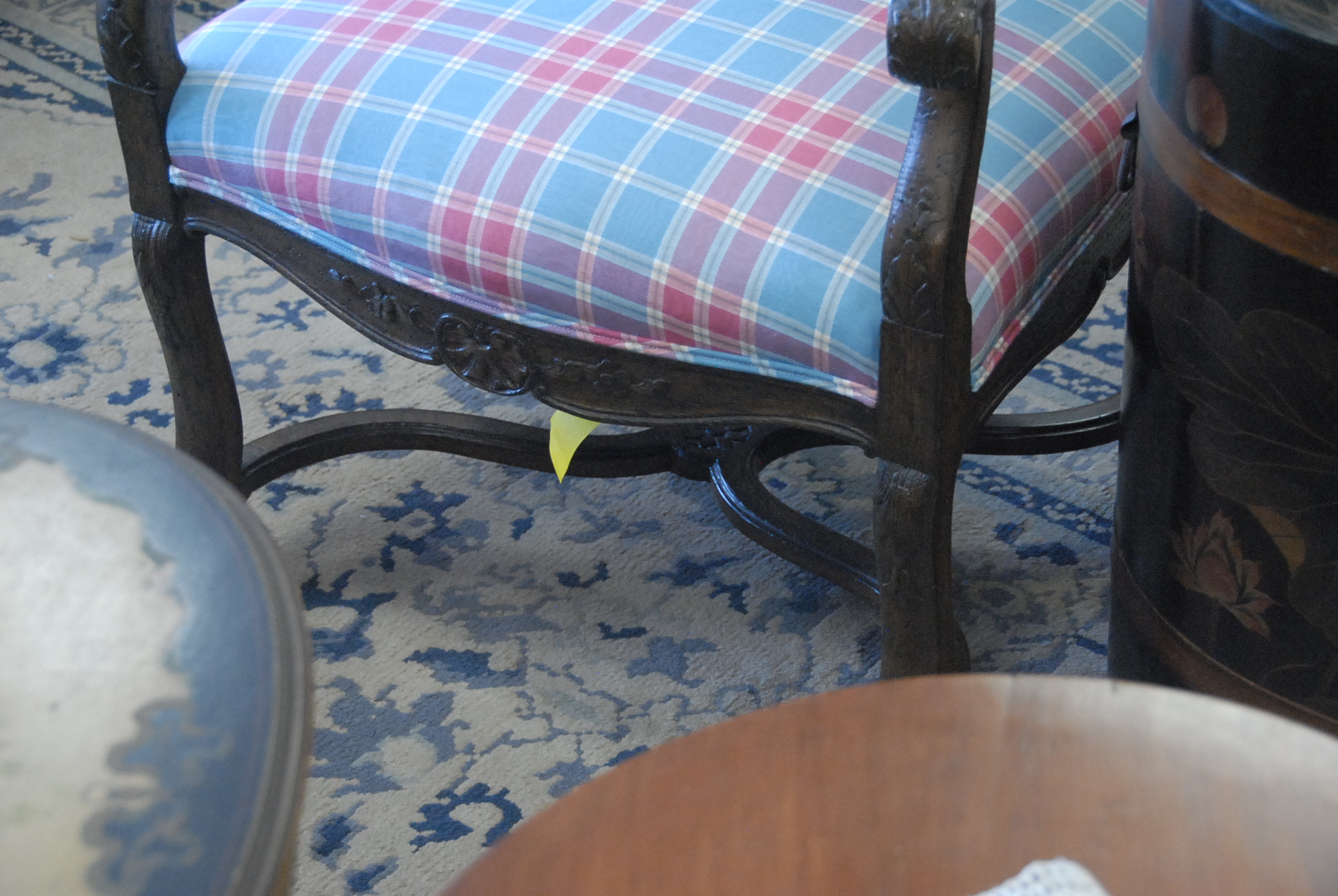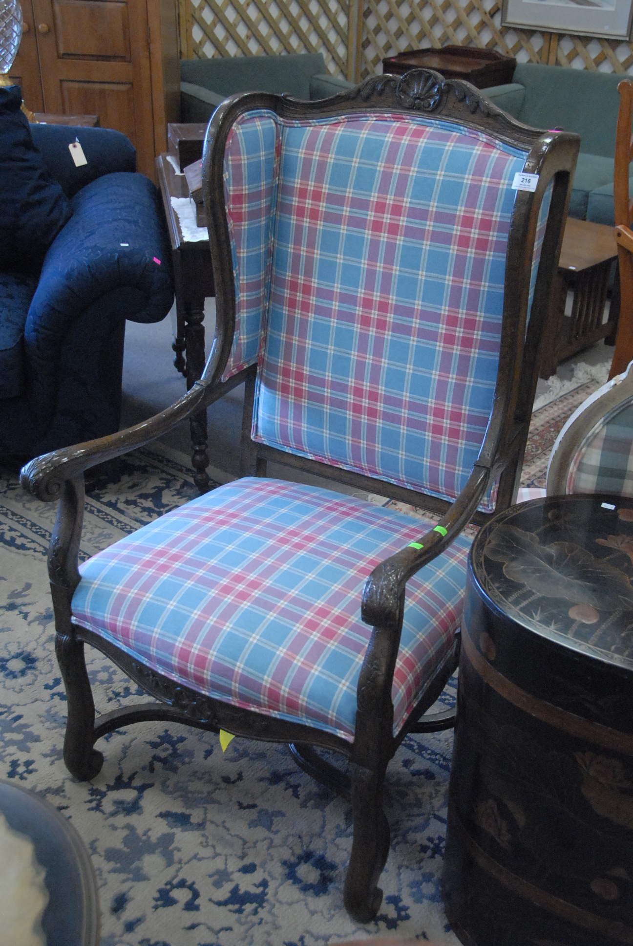 Lot 216: Two piece lot to include Continental style upholstered armchair and French style side chair.