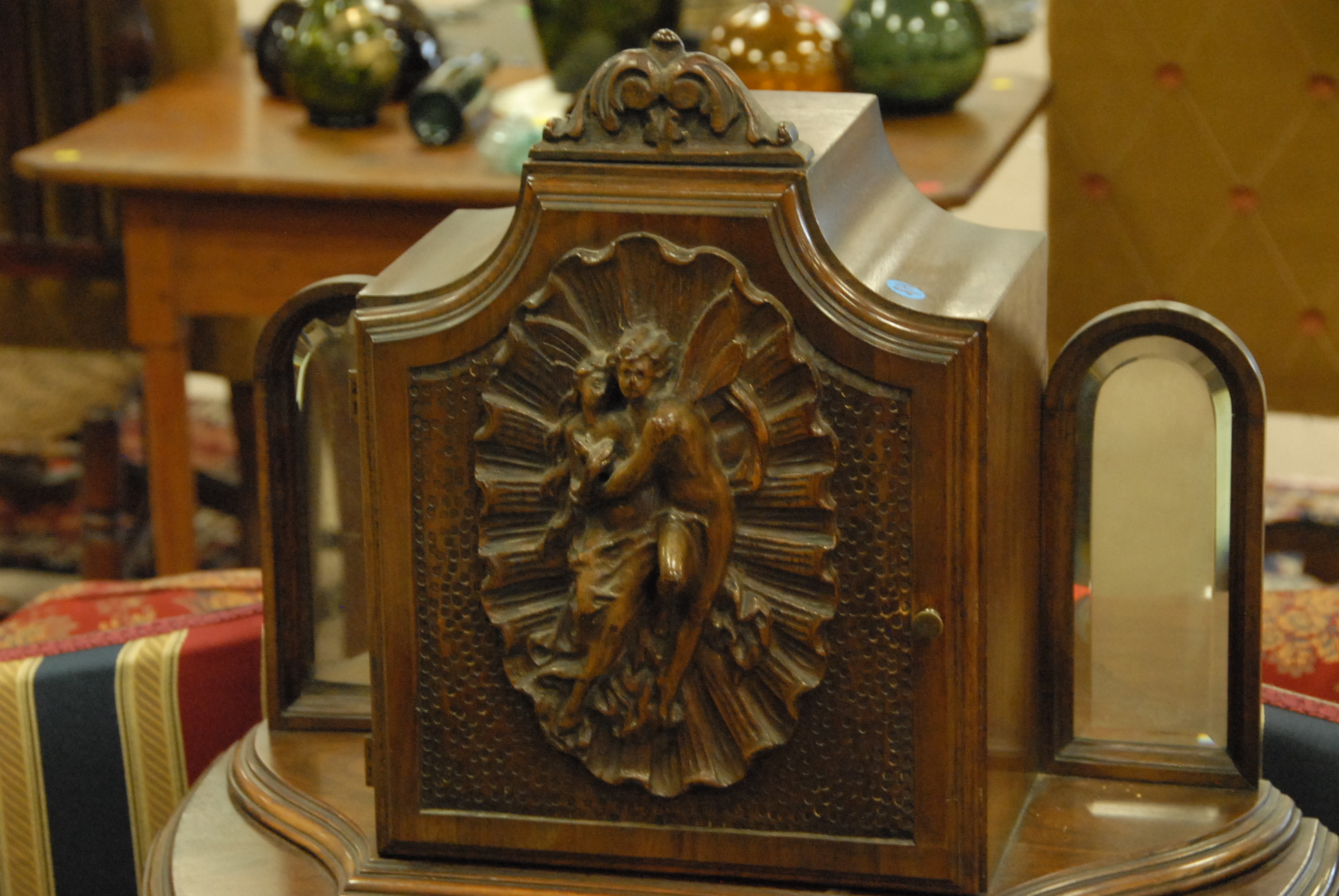 Walnut carved stand with a drawer and door