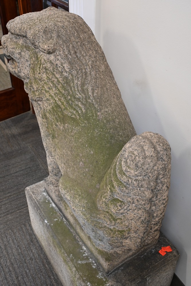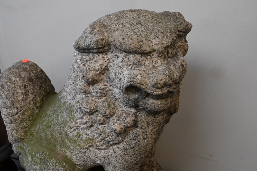 Lot 216A: Pair of 19th Century Carved Granite Foo Dogs