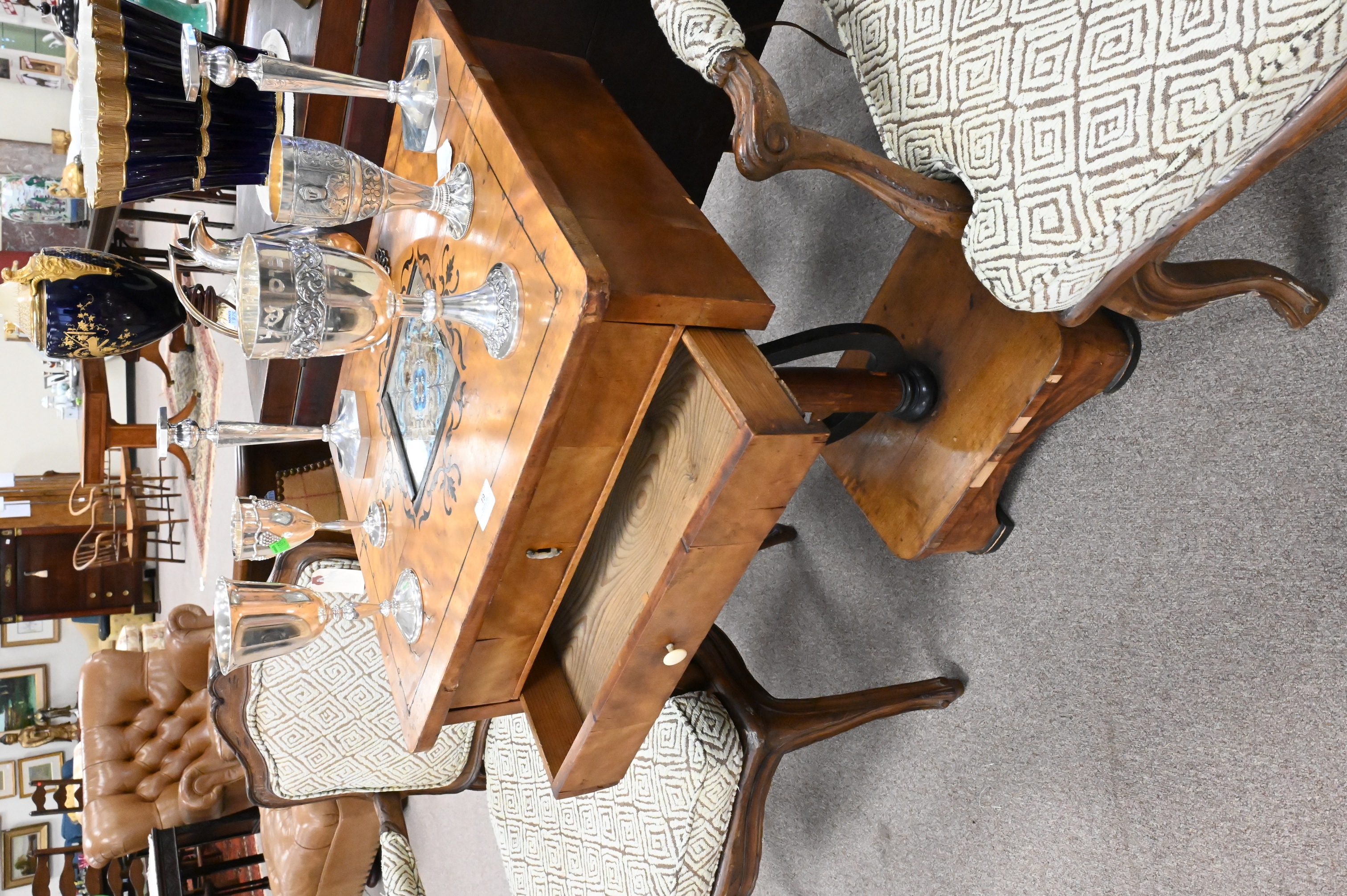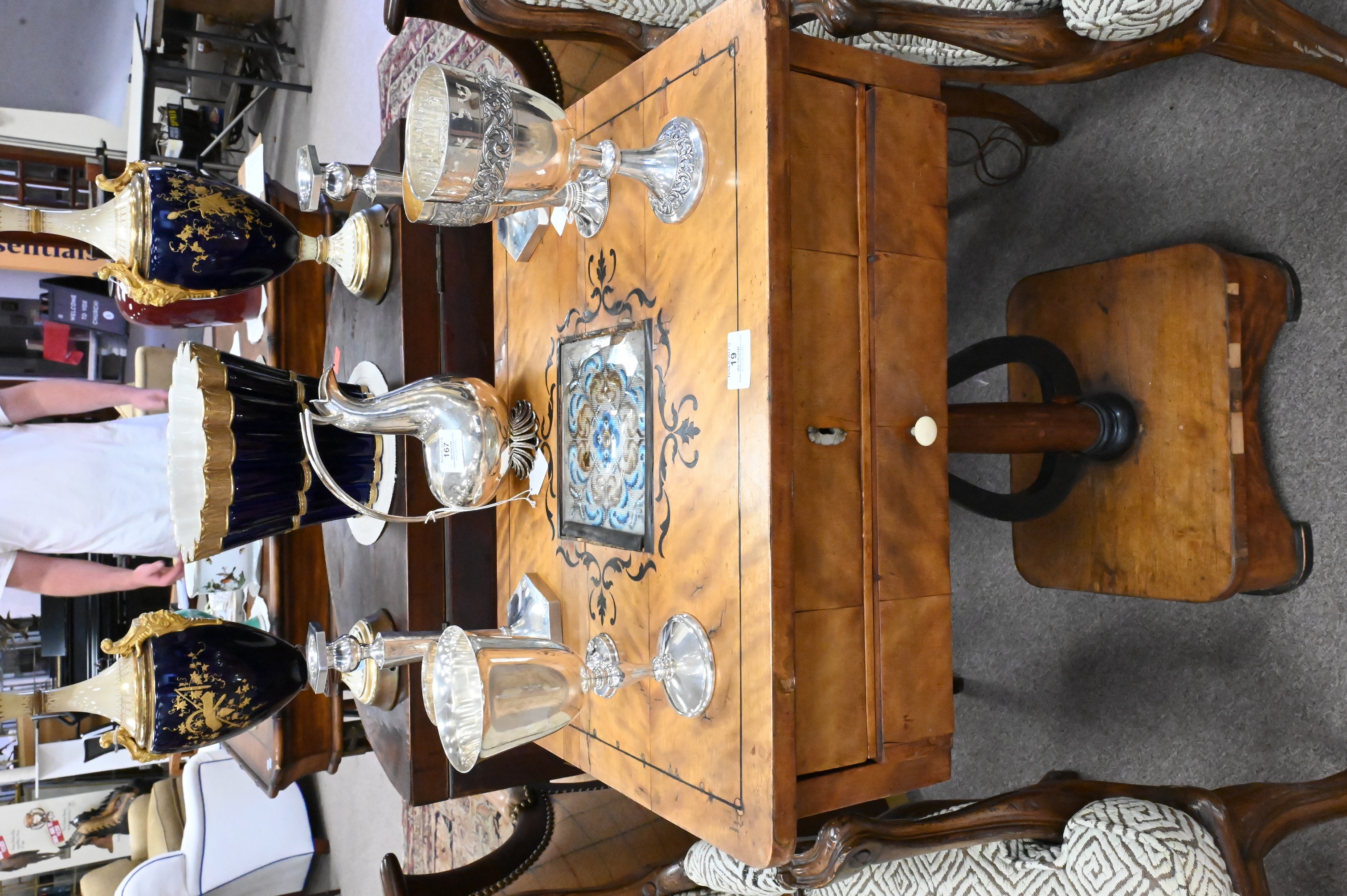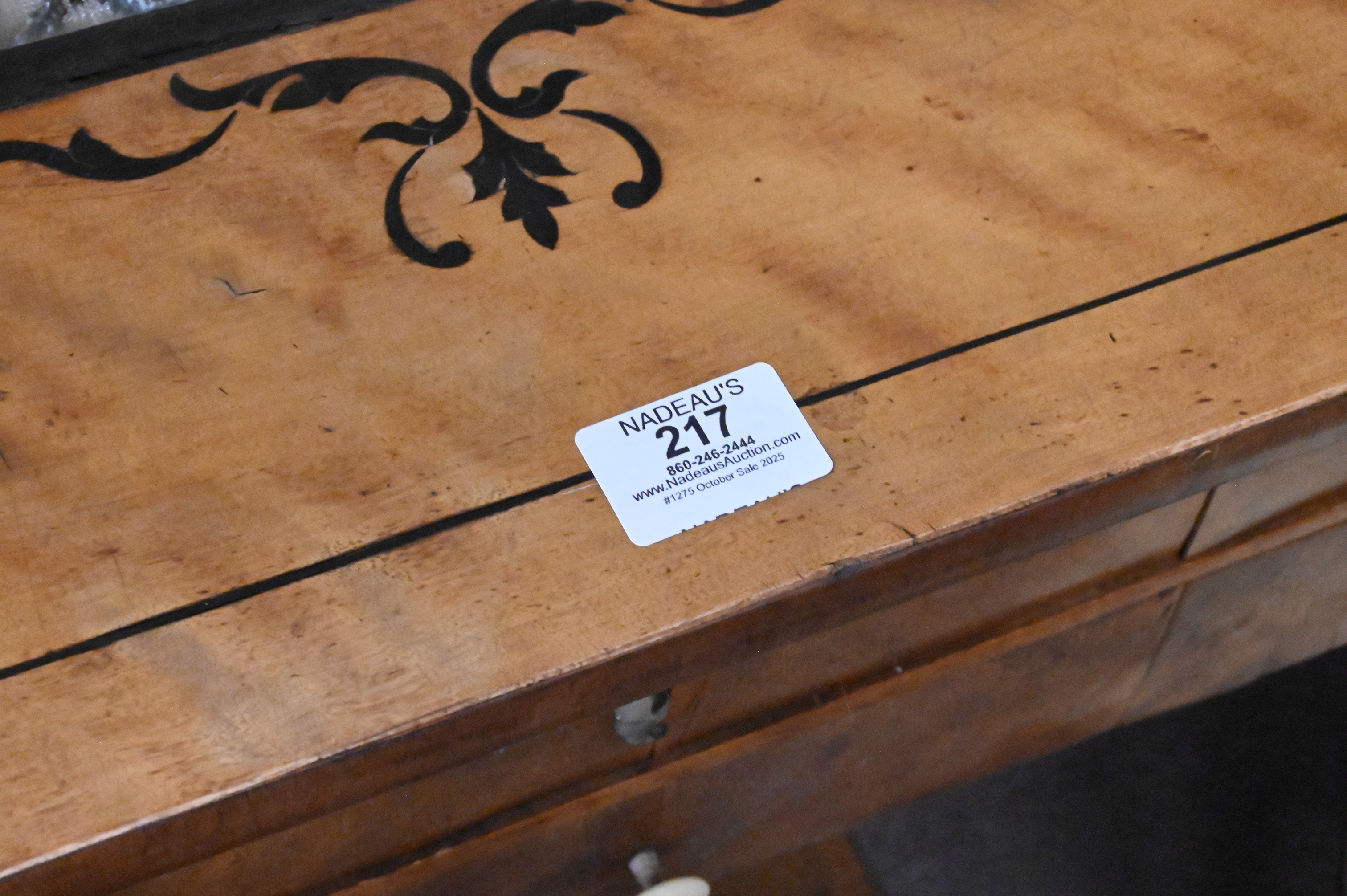 Lot 217: Biedermeier Fruitwood and Ebonized Two Drawer Work Table