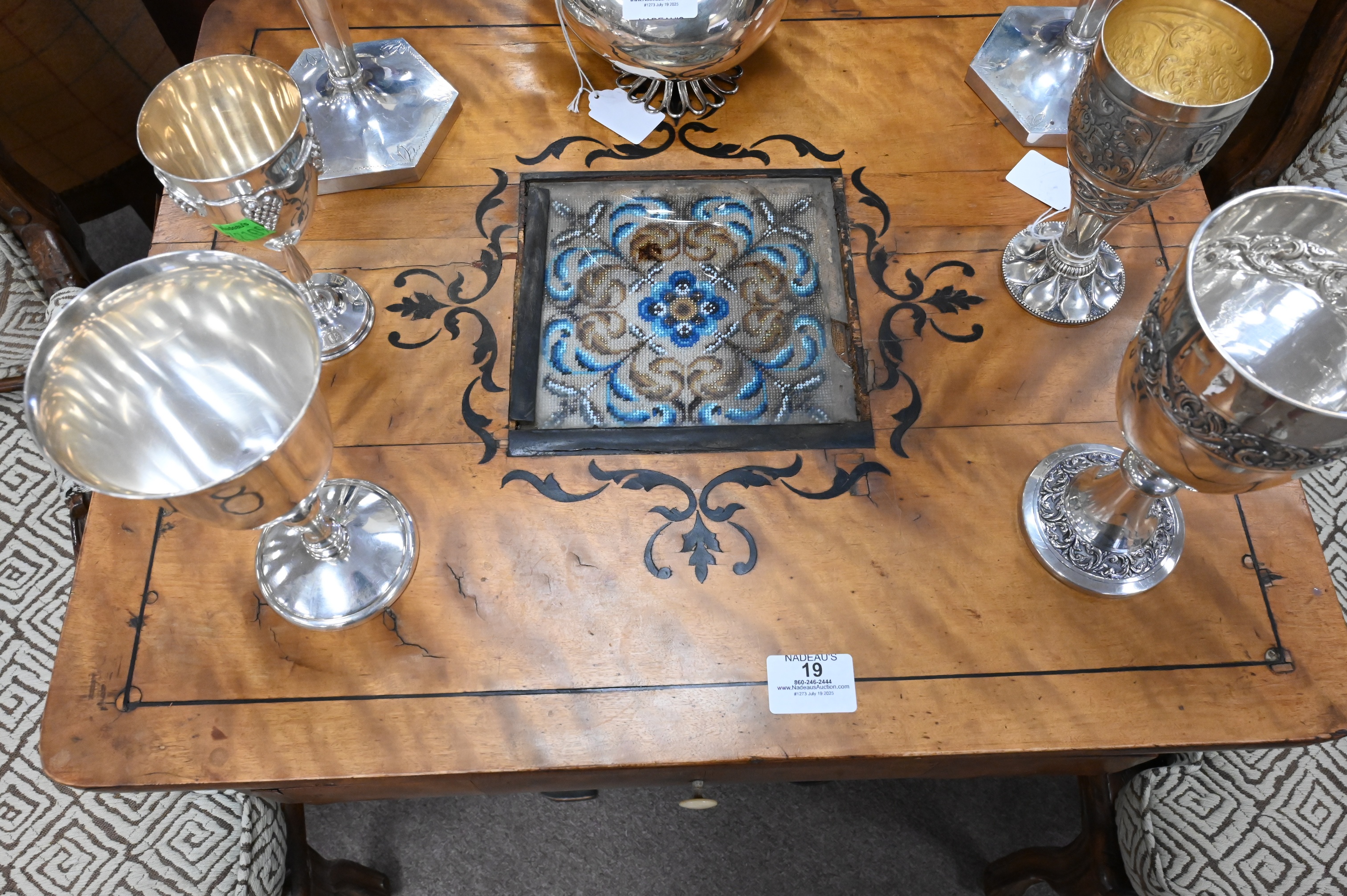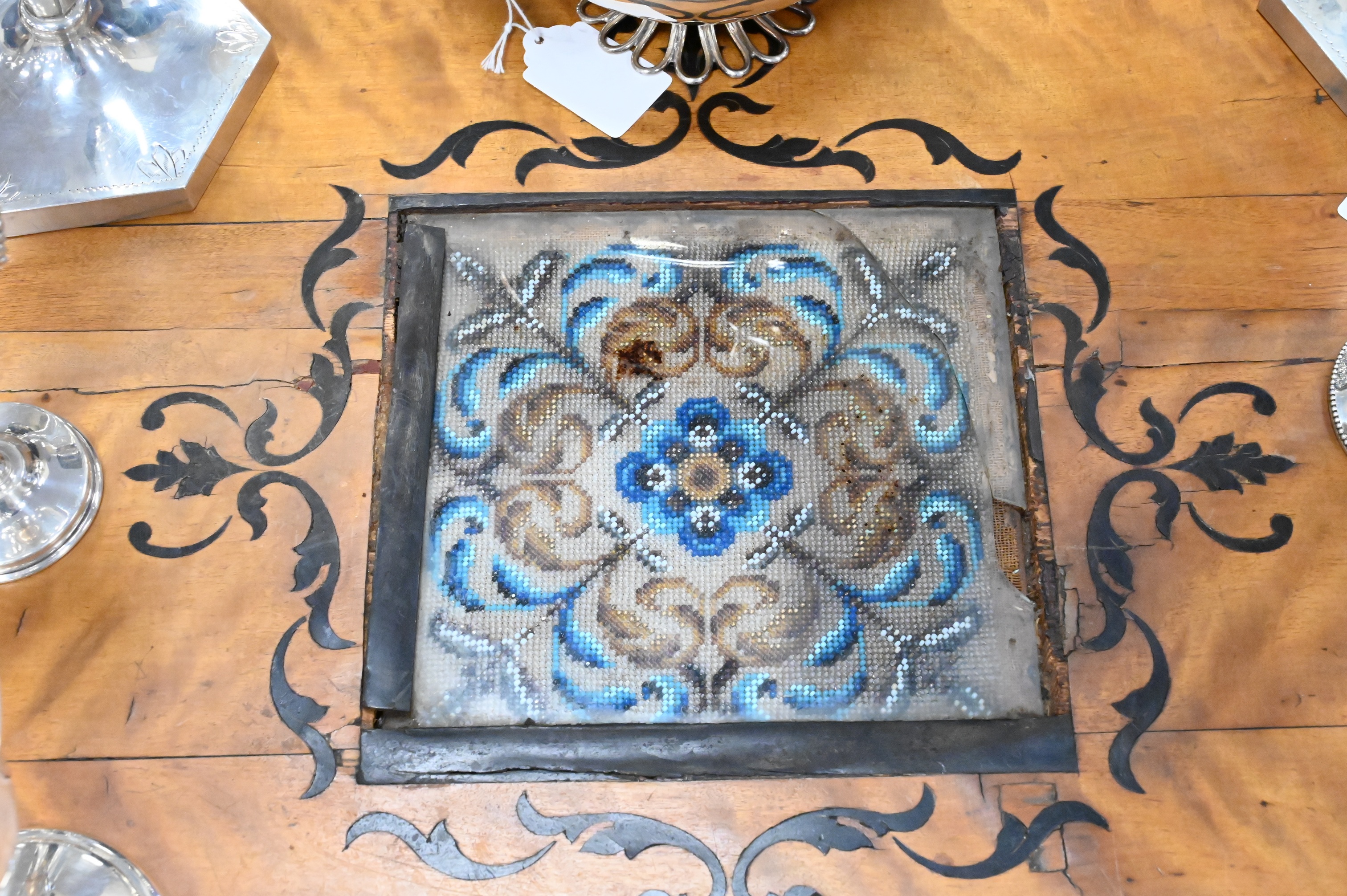 having a central inlaid beadwork panel, circa 1840