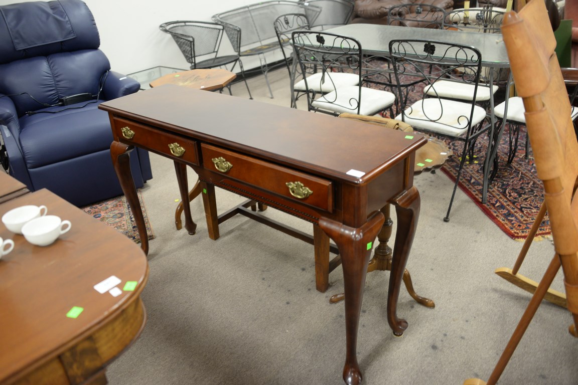 Cherry Queen Anne style hall table, ht. 29 1/2 in. wd. 48 in. dp. 14 in.