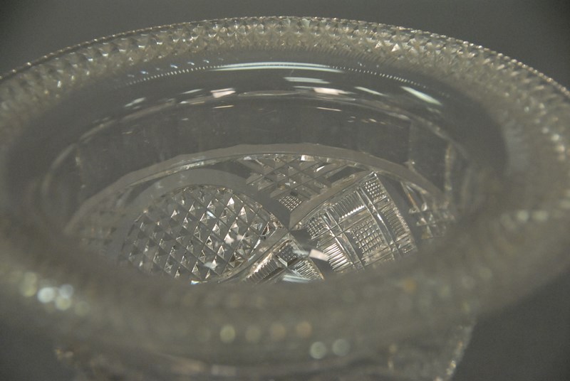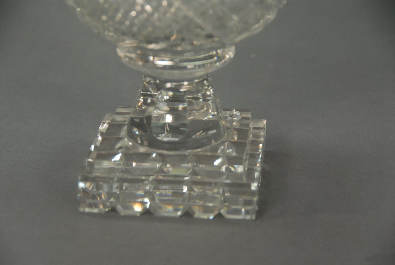 Lot 217: Cut crystal covered compote with square base. ht. 10 1/2in.