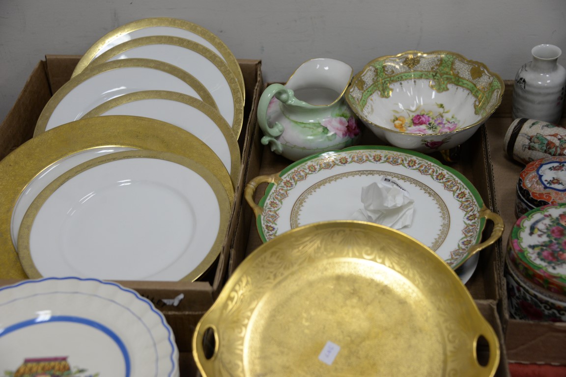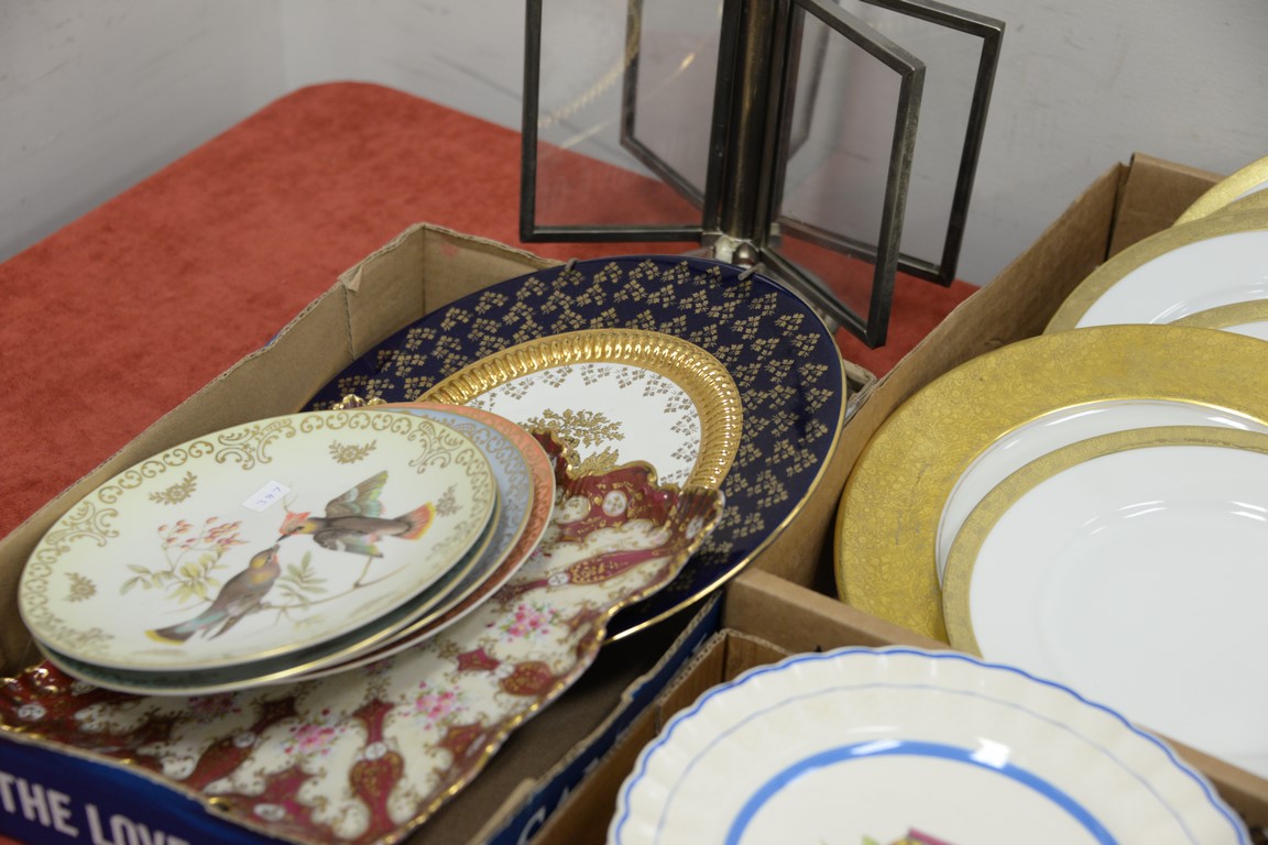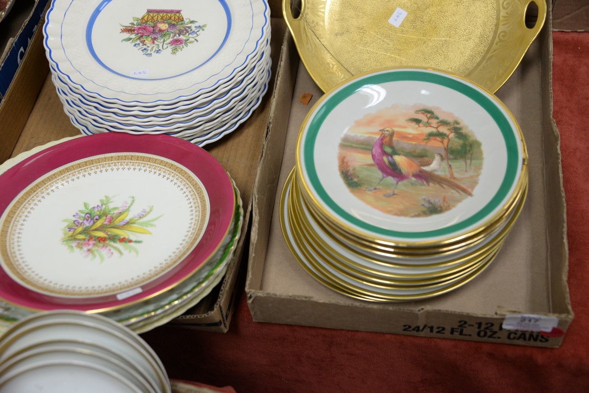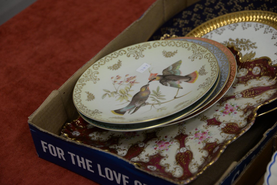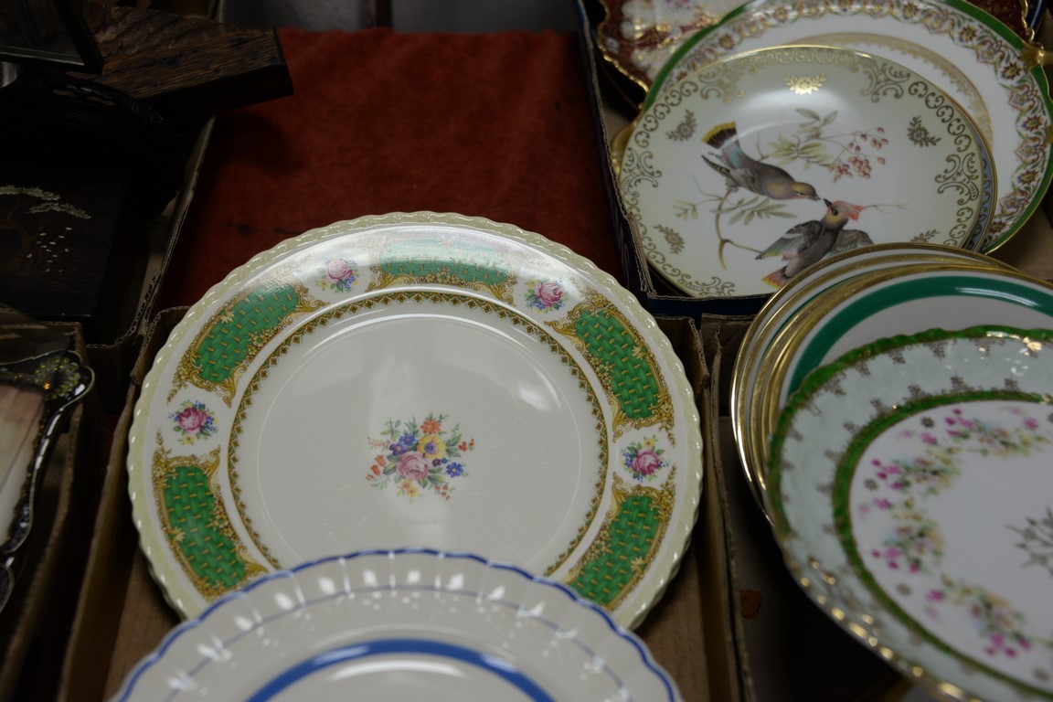Five box lots with porcelain plates, set of 9 D’arceau Limoges, Selb Bavaria bird plates, Copeland Spode plates, etc.
