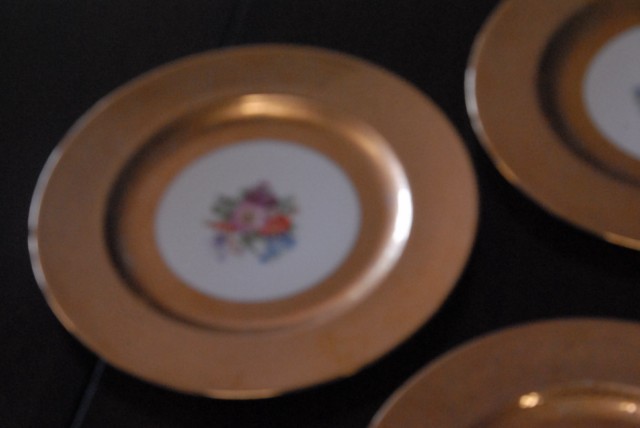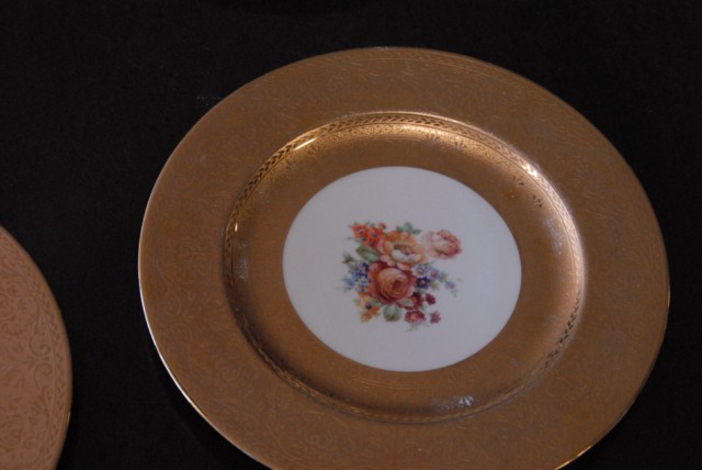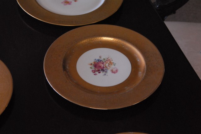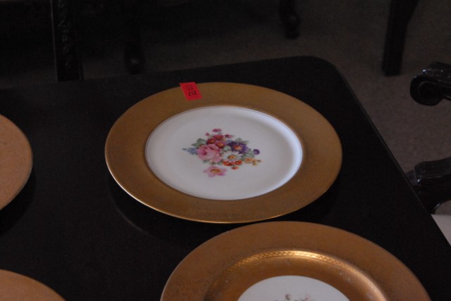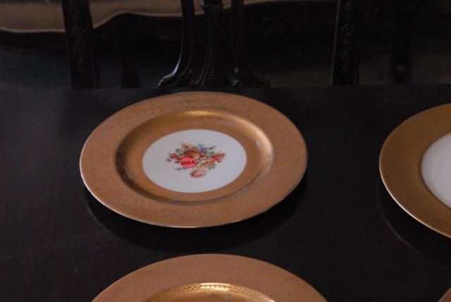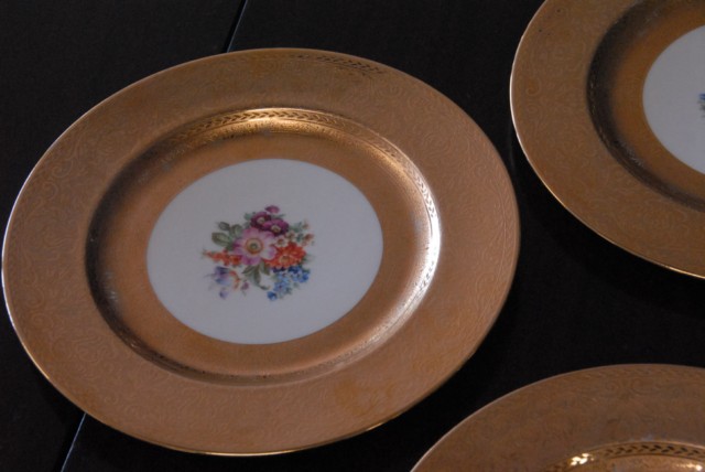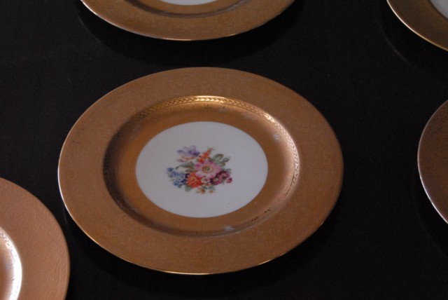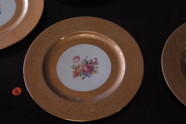 Group of 7 plates with heavy gold pattern, 6 of one pattern, 1 of another.
