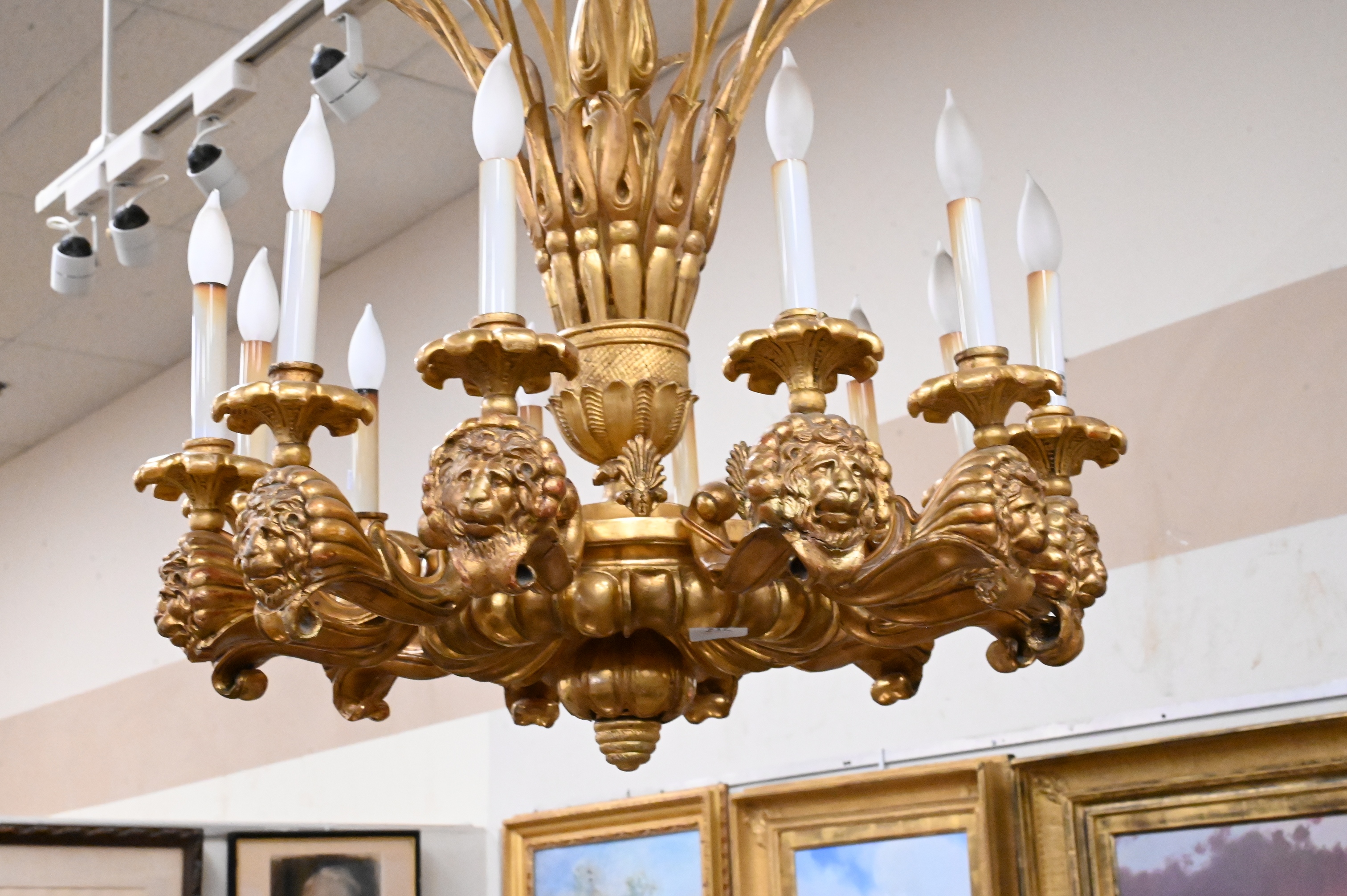 Lot 217: Neoclassical Giltwood Twelve-Light Chandelier