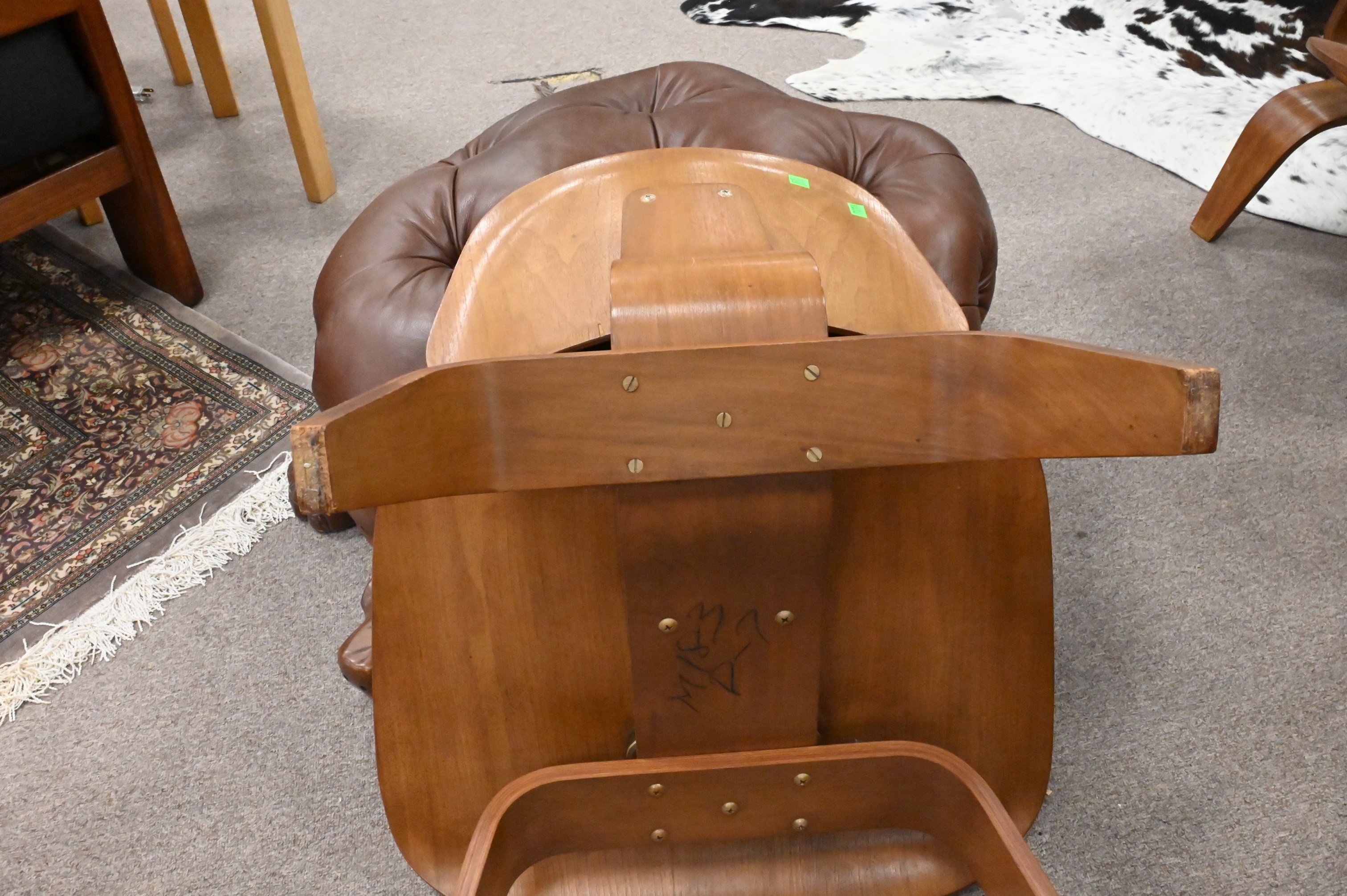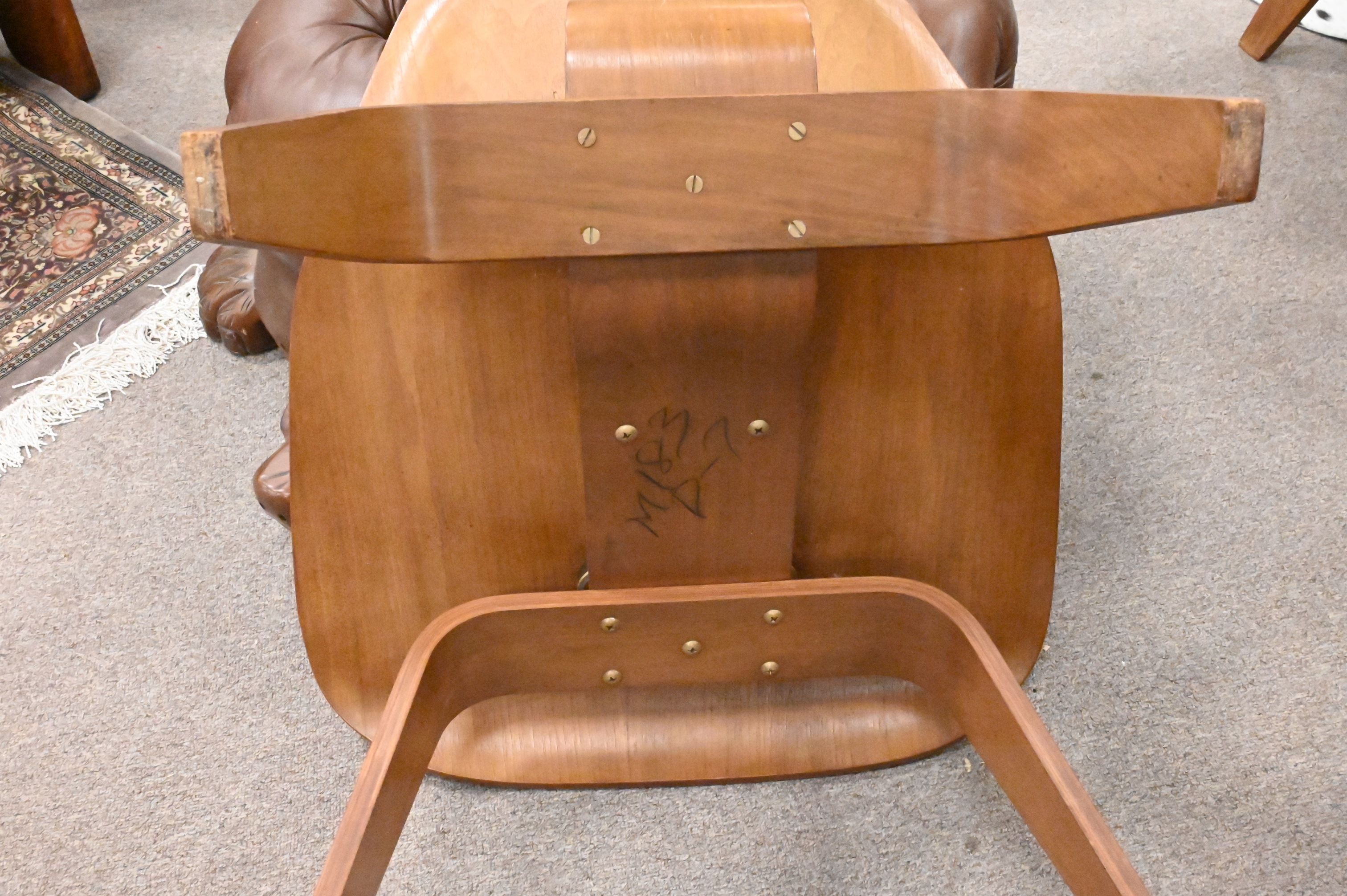 Pair of Eames Potato Chip Chairs, height 25 1/2 inches, length 20 1/2 inches, width 22 1/2 inches.