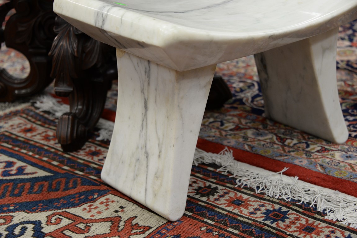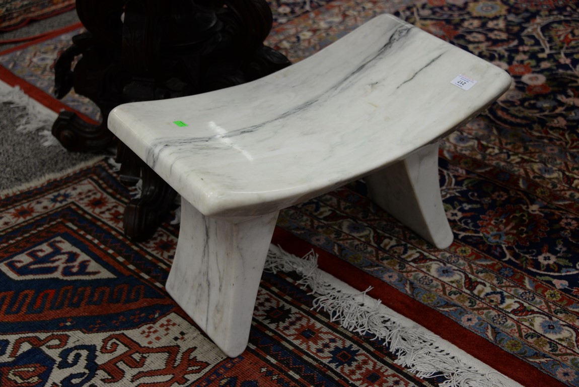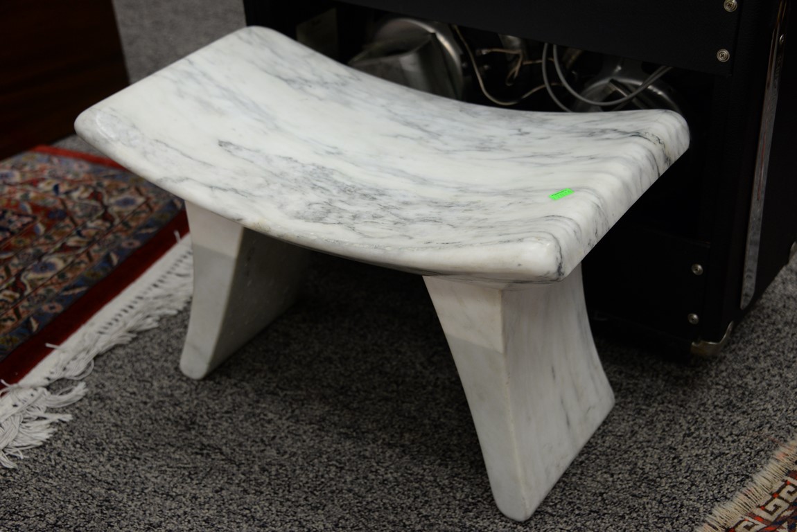 Lot 217: Pair of modern white marble small benches / stools. ht. 14 1/2 in. lg. 23 1/2 in. wd. 13 1/2 in.