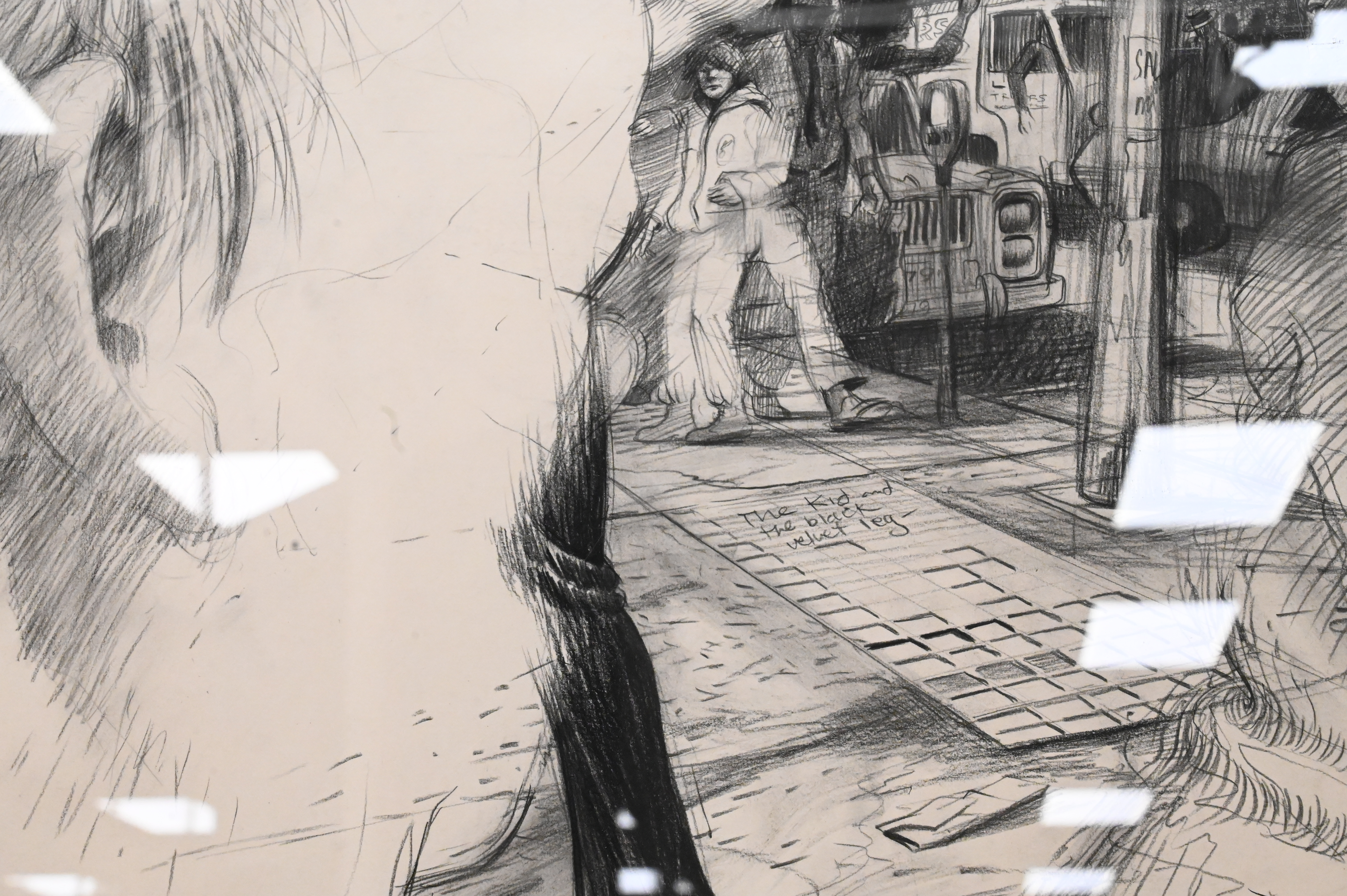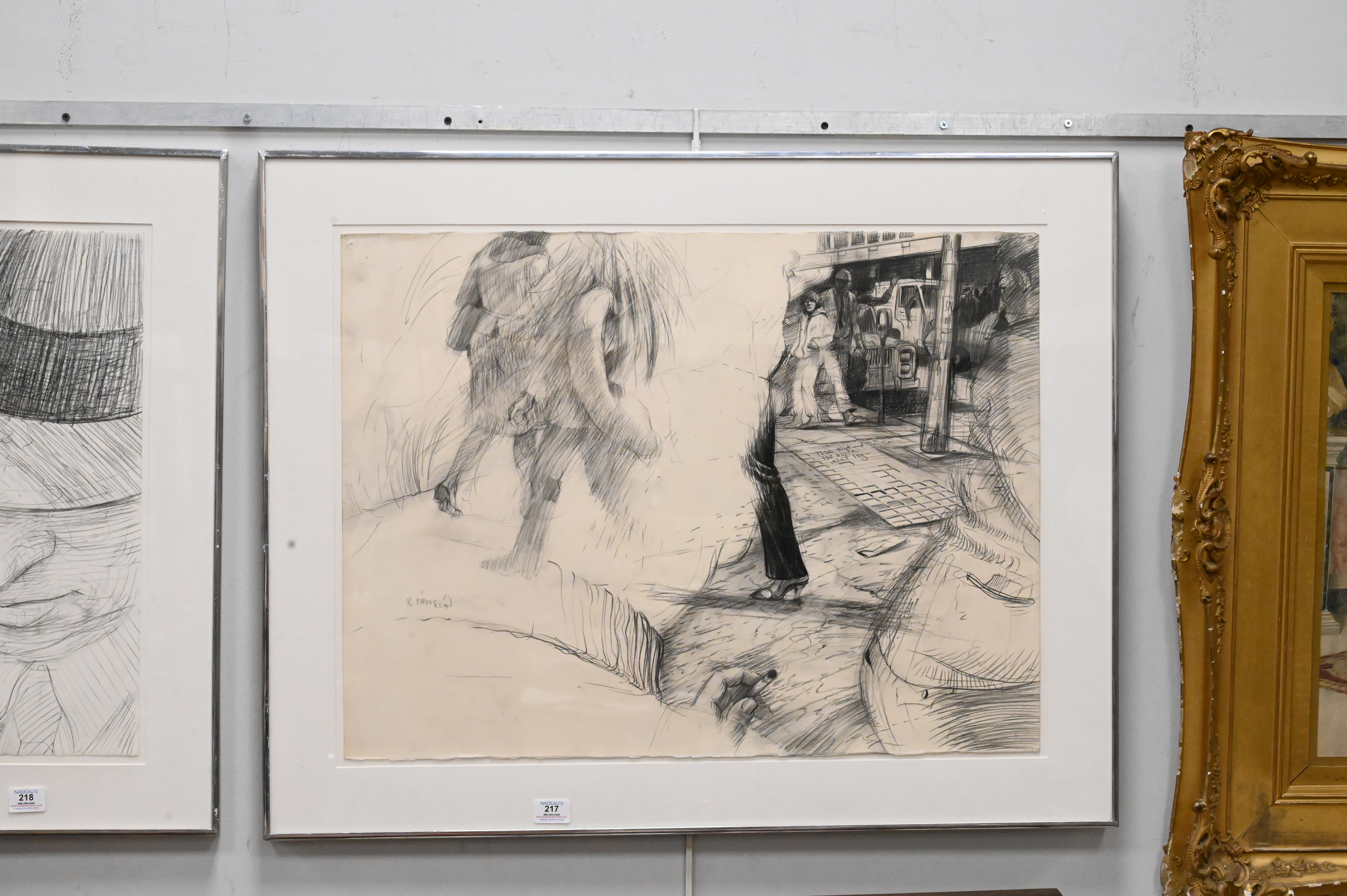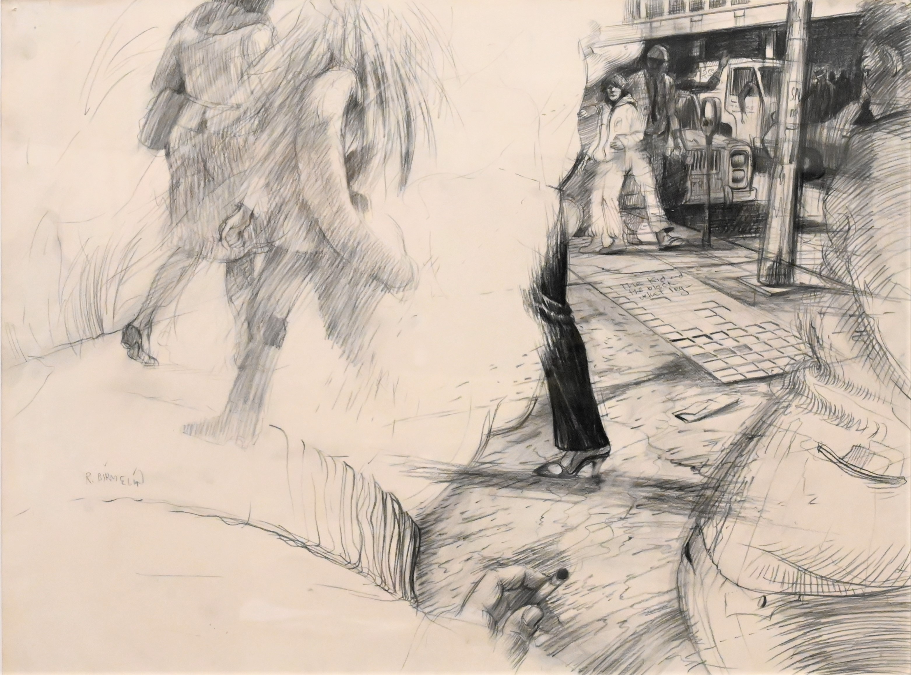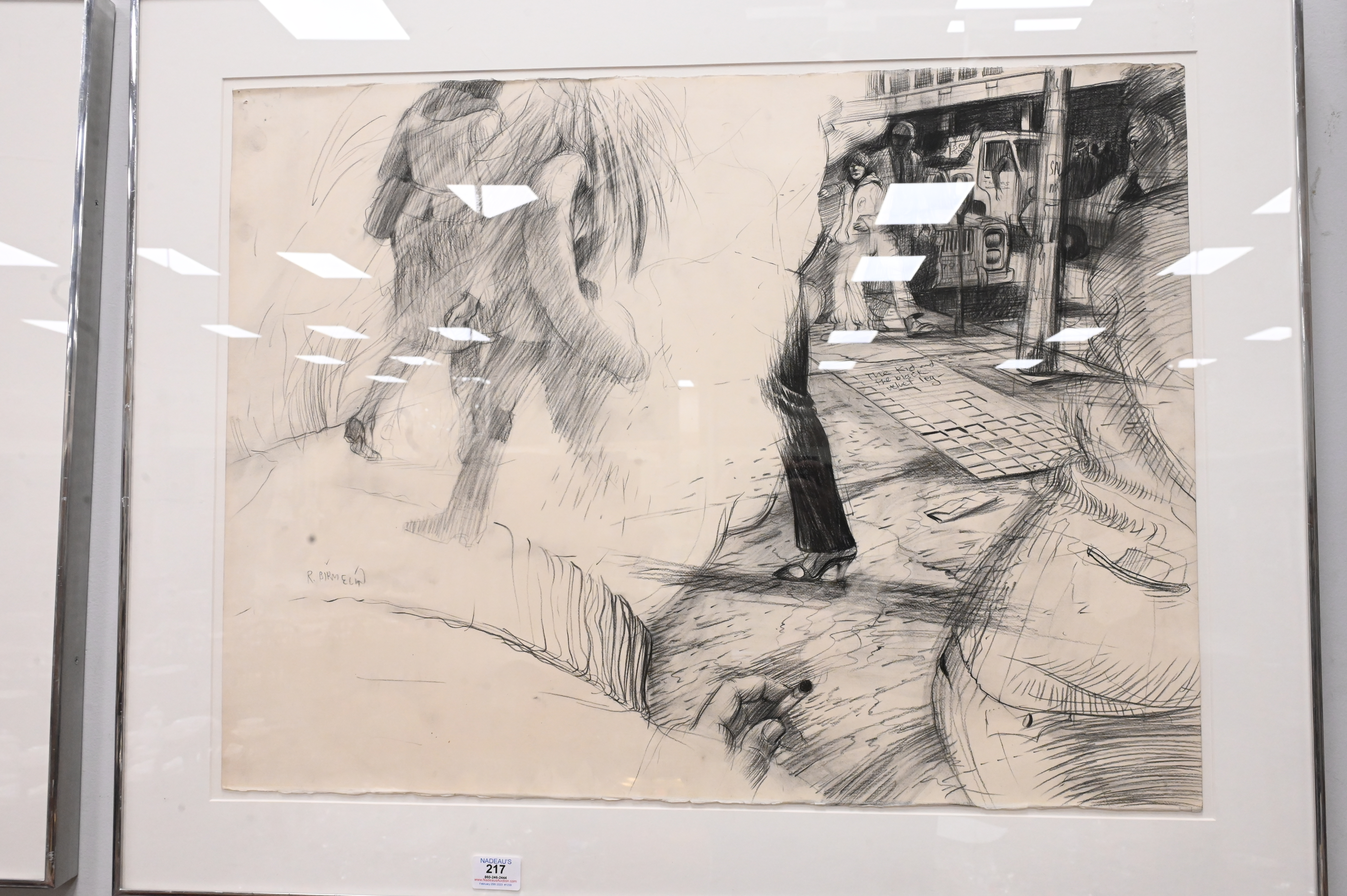 Robert Birmelin (American, 1933 – 2003), graphite on paper, ‘The Kid and the Black Velvet Lag, 1983’, pencil signed lower left “R. Birmelin”, 22 1/2″ x 30″.