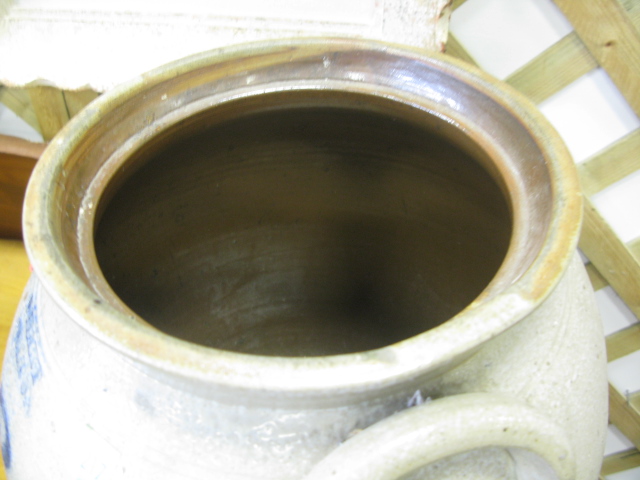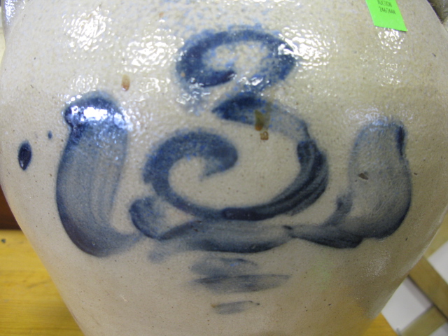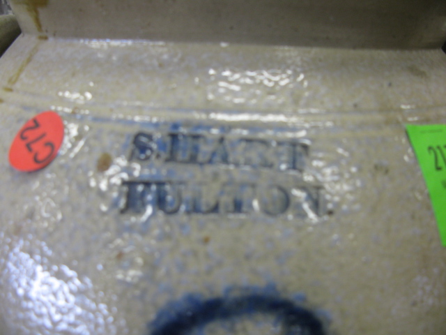 Stoneware ovoid crock marked S. Hart Fulton three gallon with blue decoration small crack in bottom