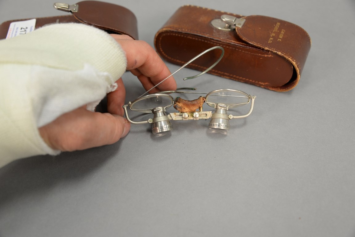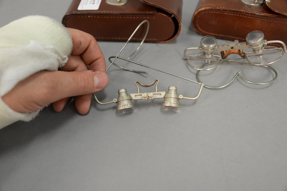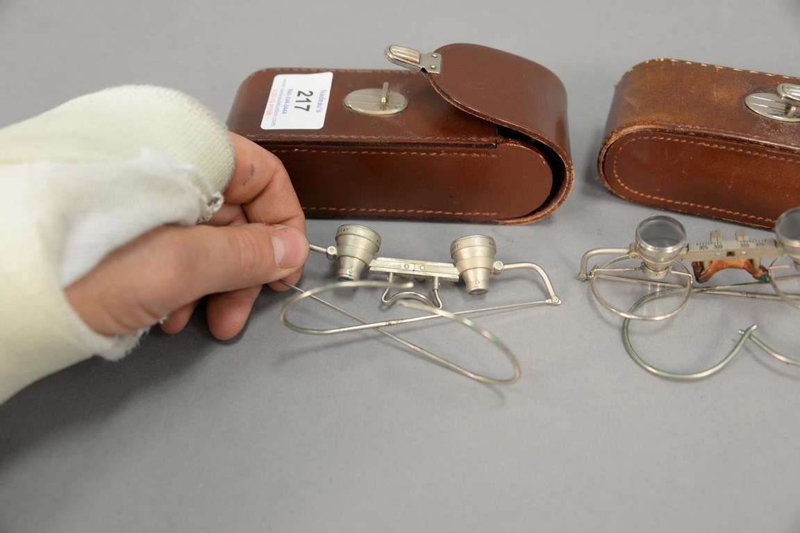 Lot 217: Two pairs of vintage Carl Zeiss Jena 2X magnifiers Germany glasses. lg. 4 1/2 in. and lg. 5 in.