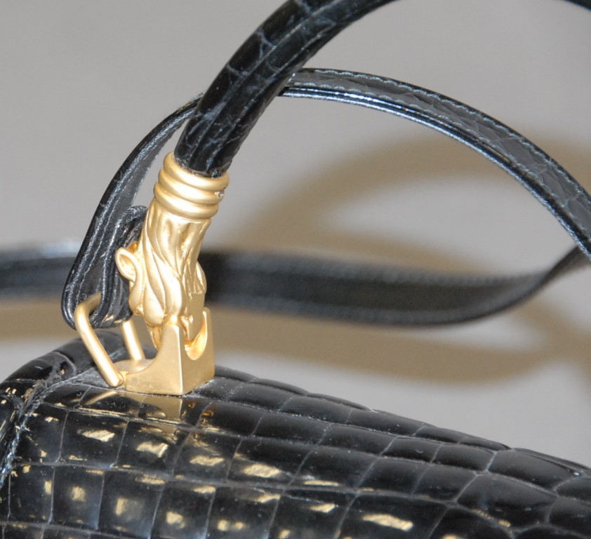 Barry Kieselstein black hand bag with footed paw feet, ht. 6.