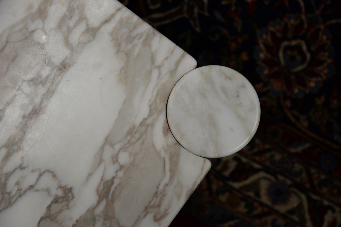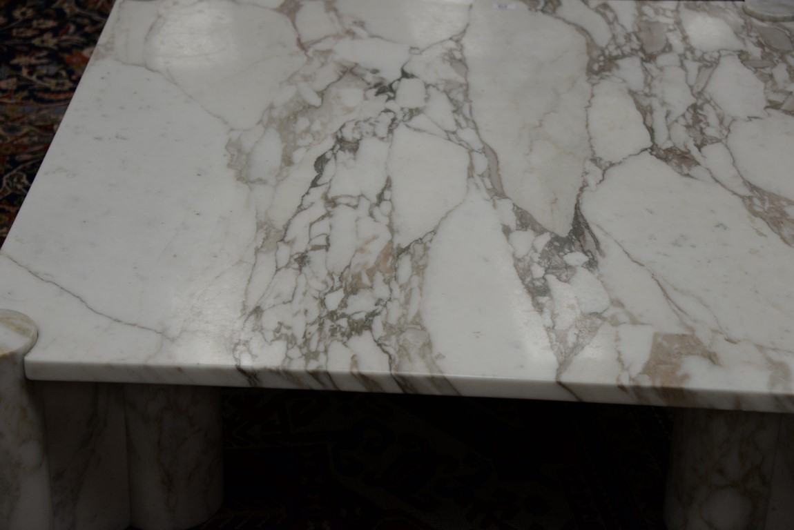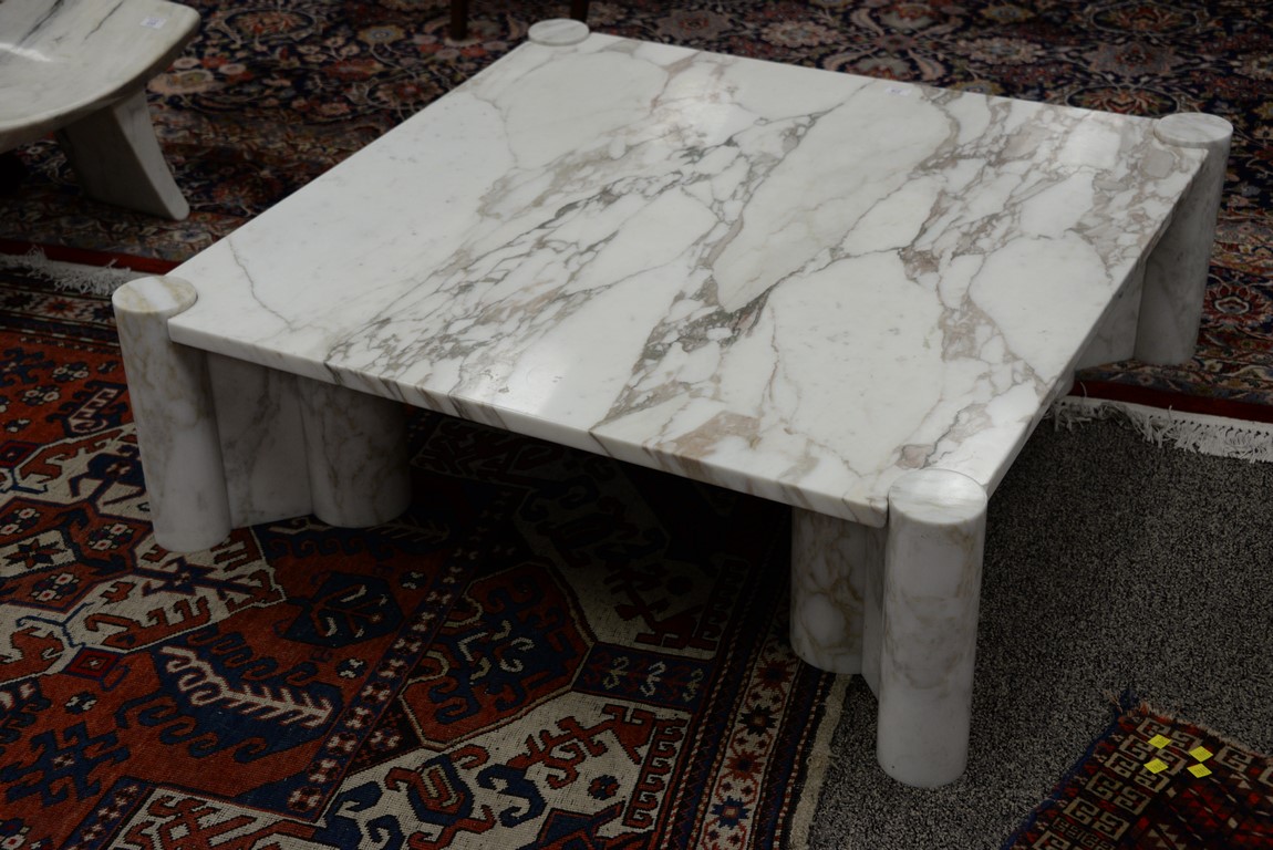 Lot 218: Gae Aulenti 1927-2012 Knoll International Jumbo white marble low table, 1965 in five parts. ht. 14 in. top: 43 1/4 x 43 1/4